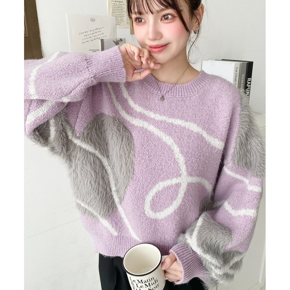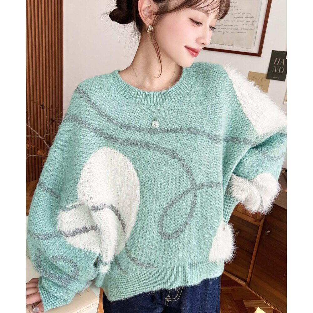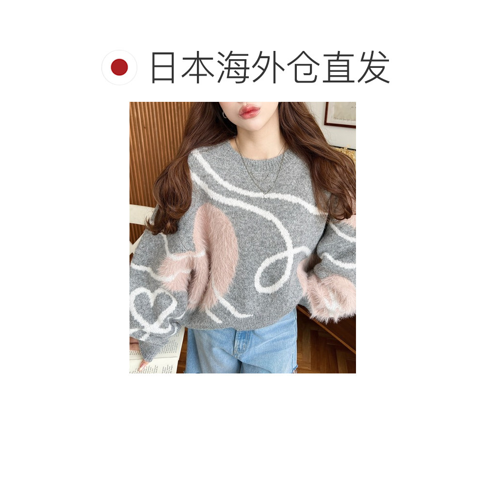纽曼色系心形提花毛衣 女装 哈日风宽松 日本直邮moment 1h可退