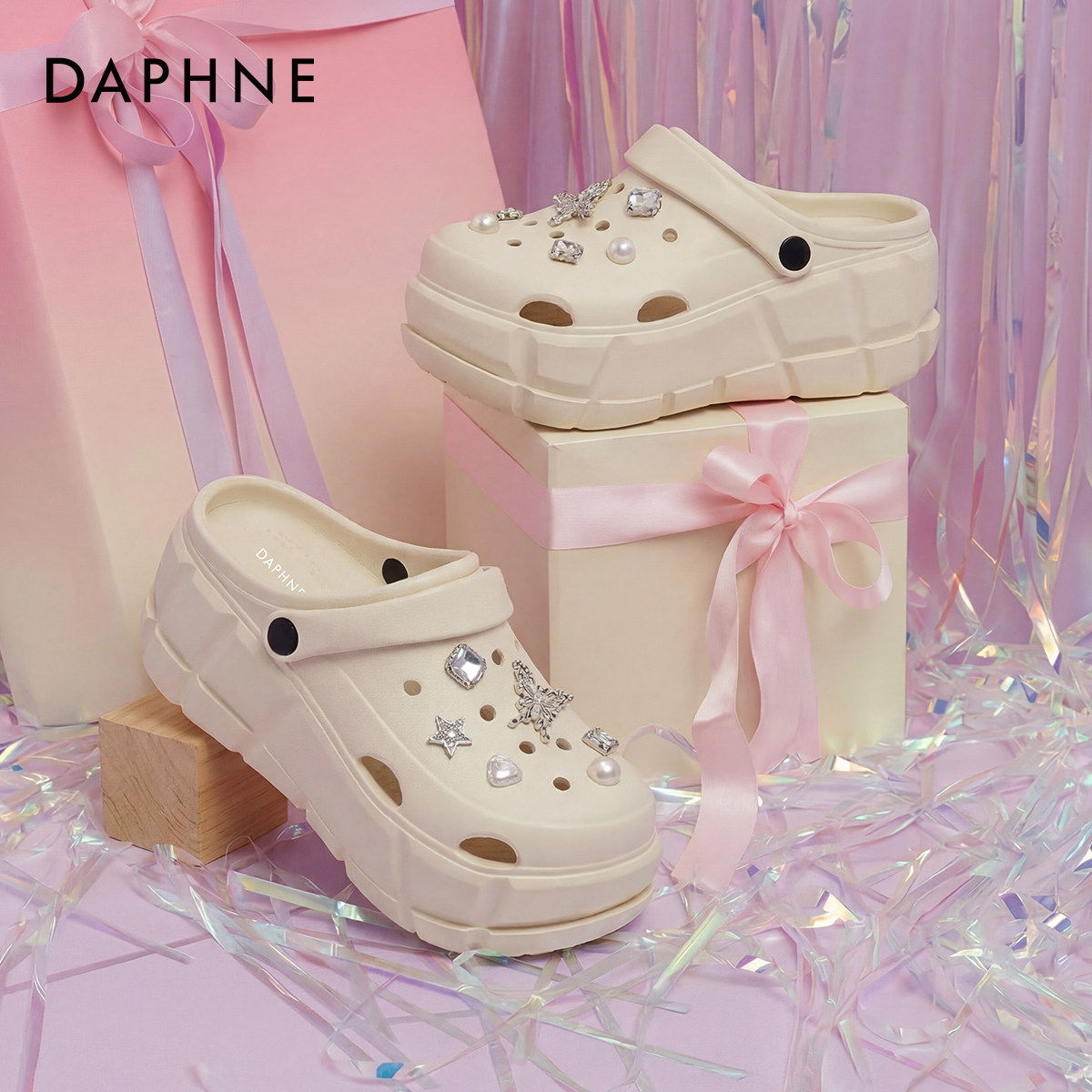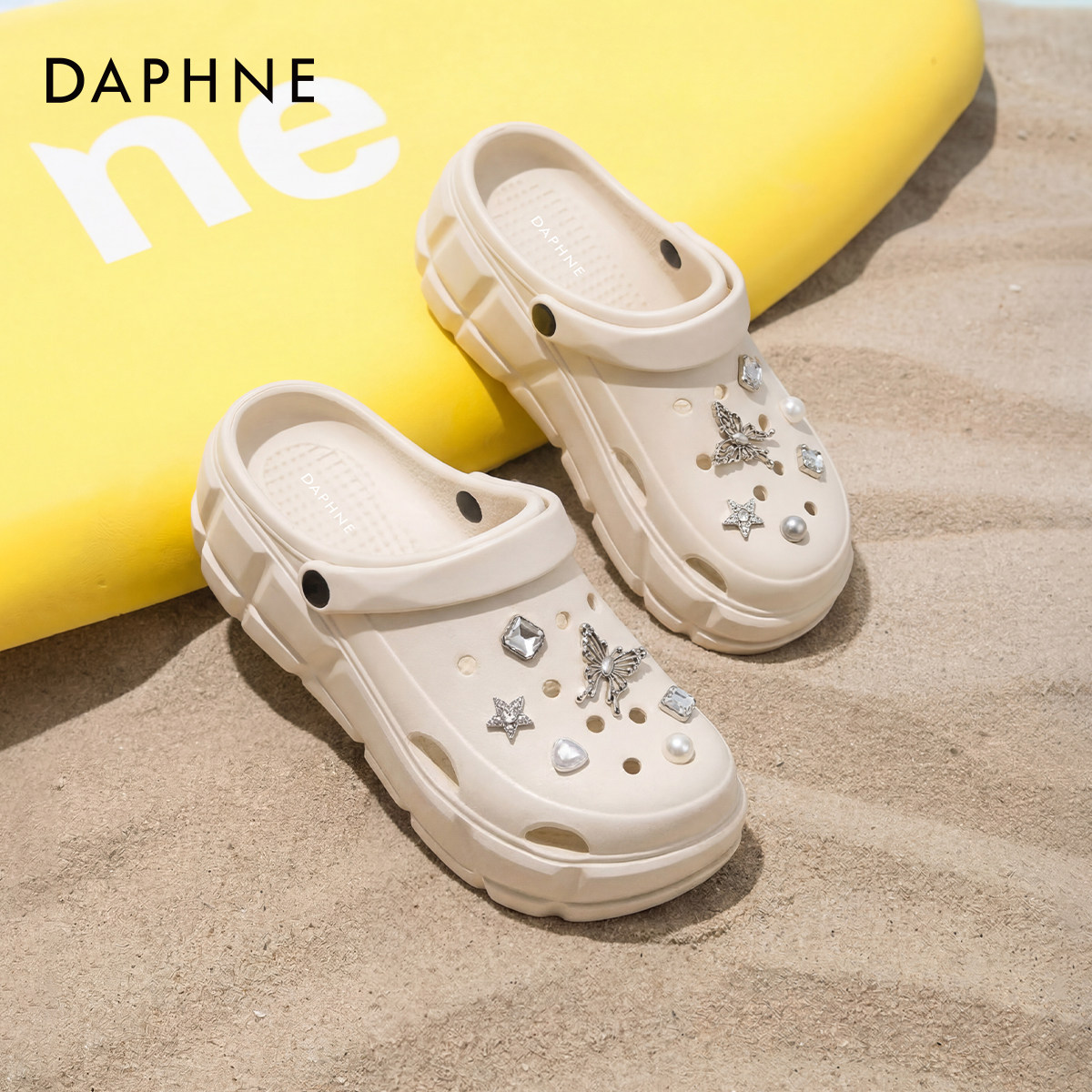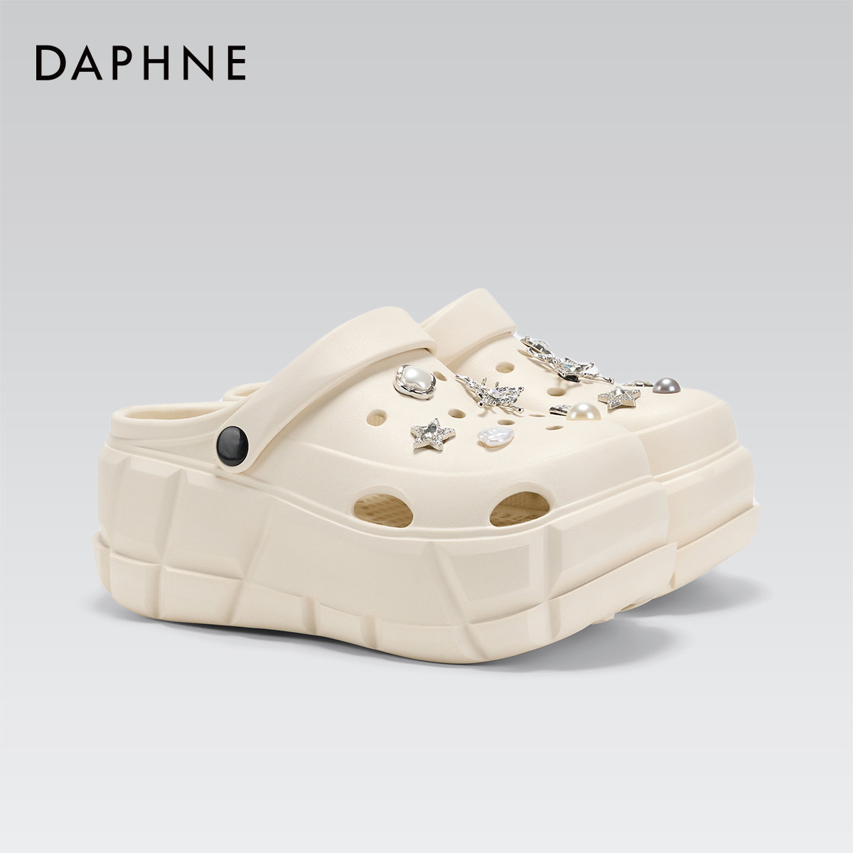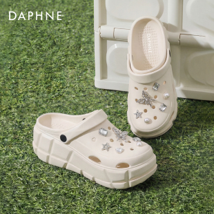 一脚蹬女鞋 达芙妮厚底洞洞鞋 外穿增高防滑凉拖鞋 夏季 子 女2026新款