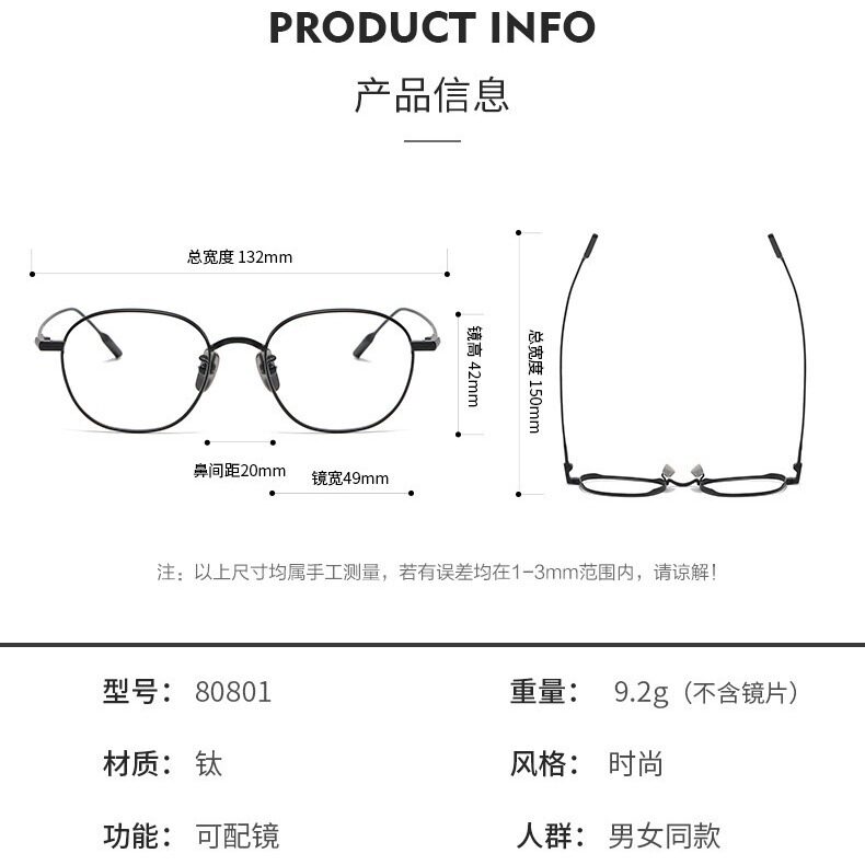 超轻钛纯眼镜框日系复古文艺防蓝光近视眼镜架可配镜高度数小框