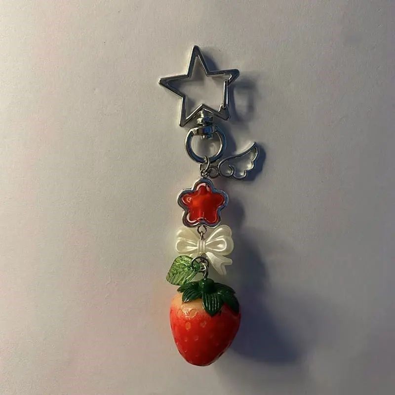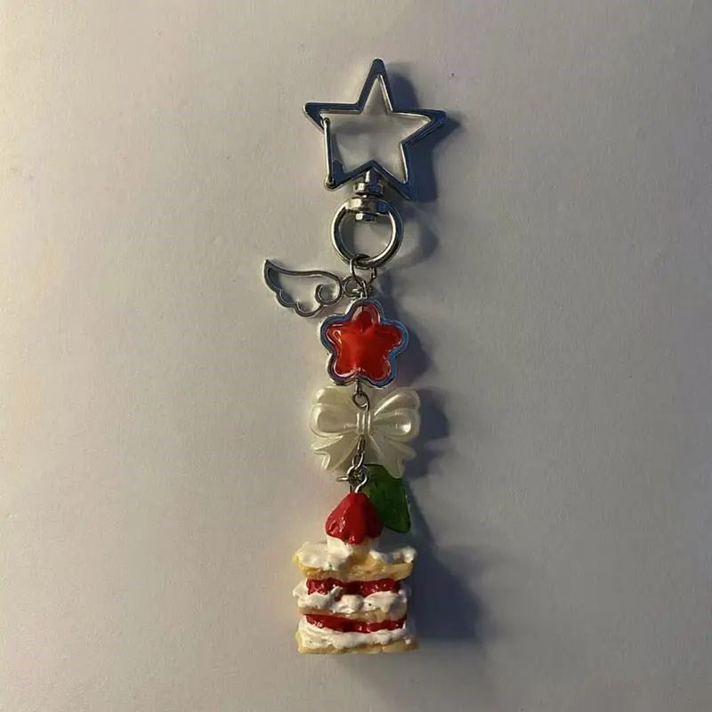Strawberry Food Cake Charm Keychain Phone Handmade
