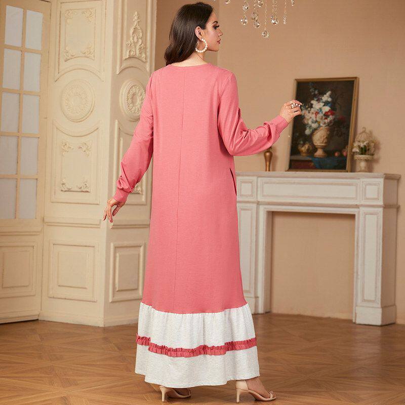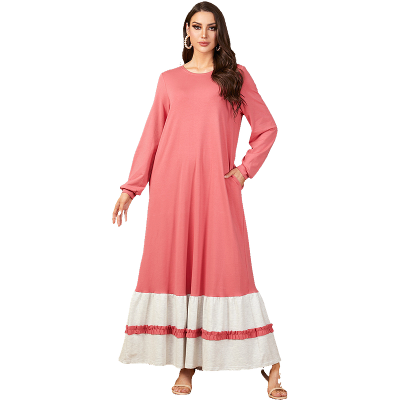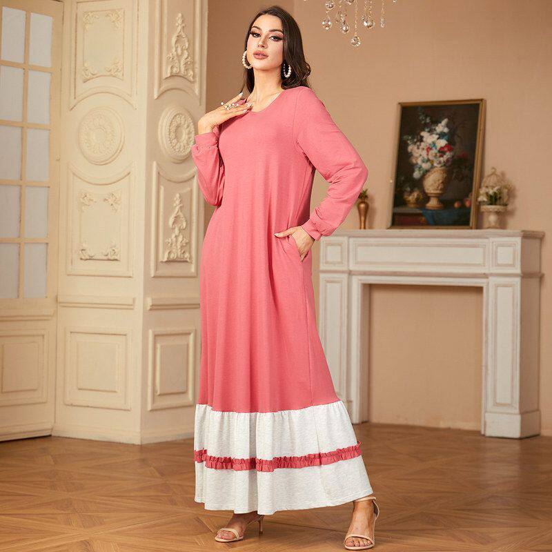 9286中东跨境圆领长袖 优雅迪拜长裙阿拉伯卫衣连衣裙 穆斯林女装