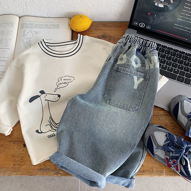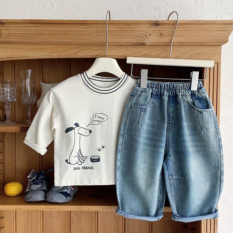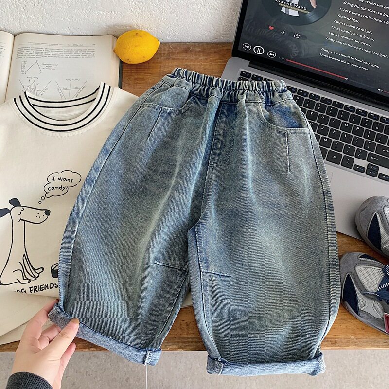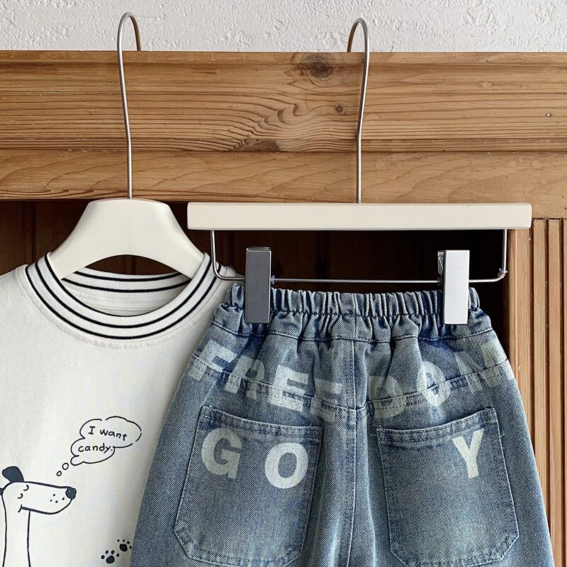 女童秋款 SS品牌童装 儿童直筒裤 子2026男童印花牛仔裤 帅气男孩裤