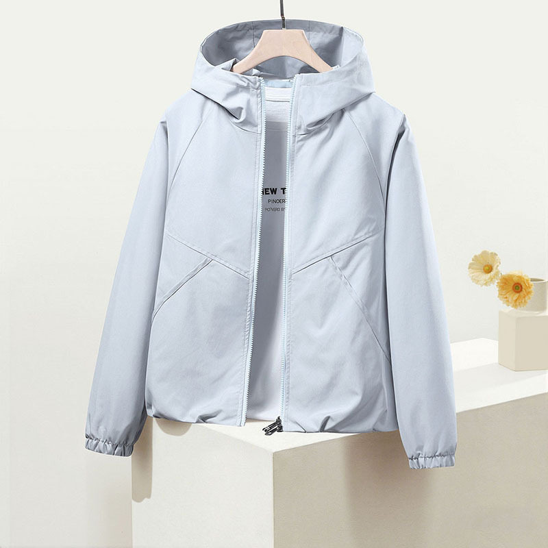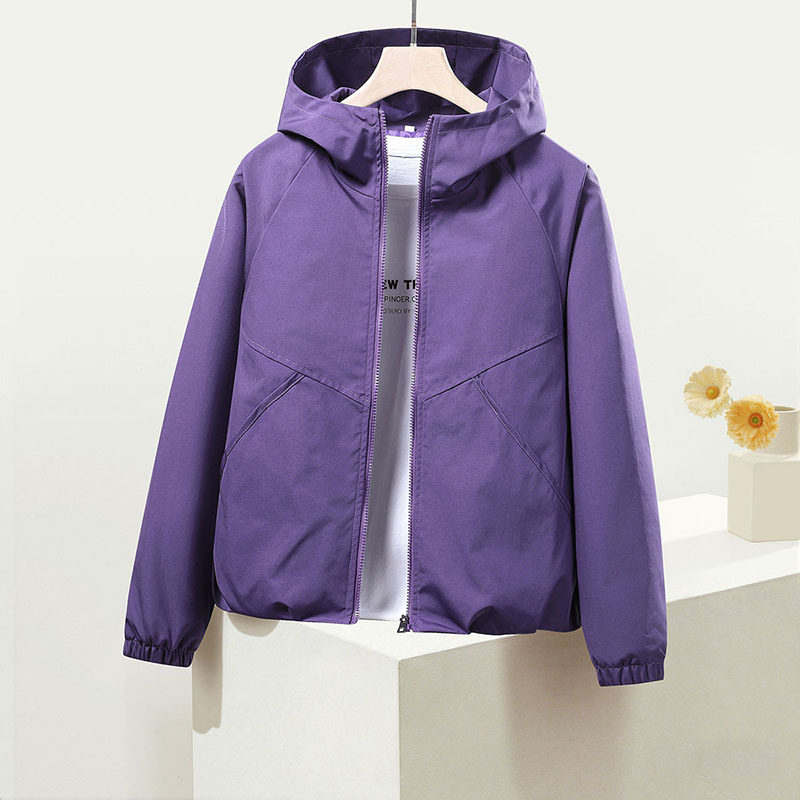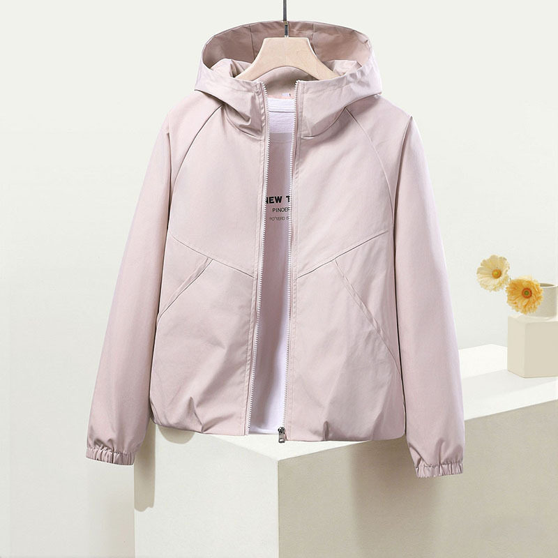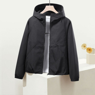 外套 百搭长袖 户外冲锋衣外套女春秋短款 防风夹克休闲宽松连帽春季