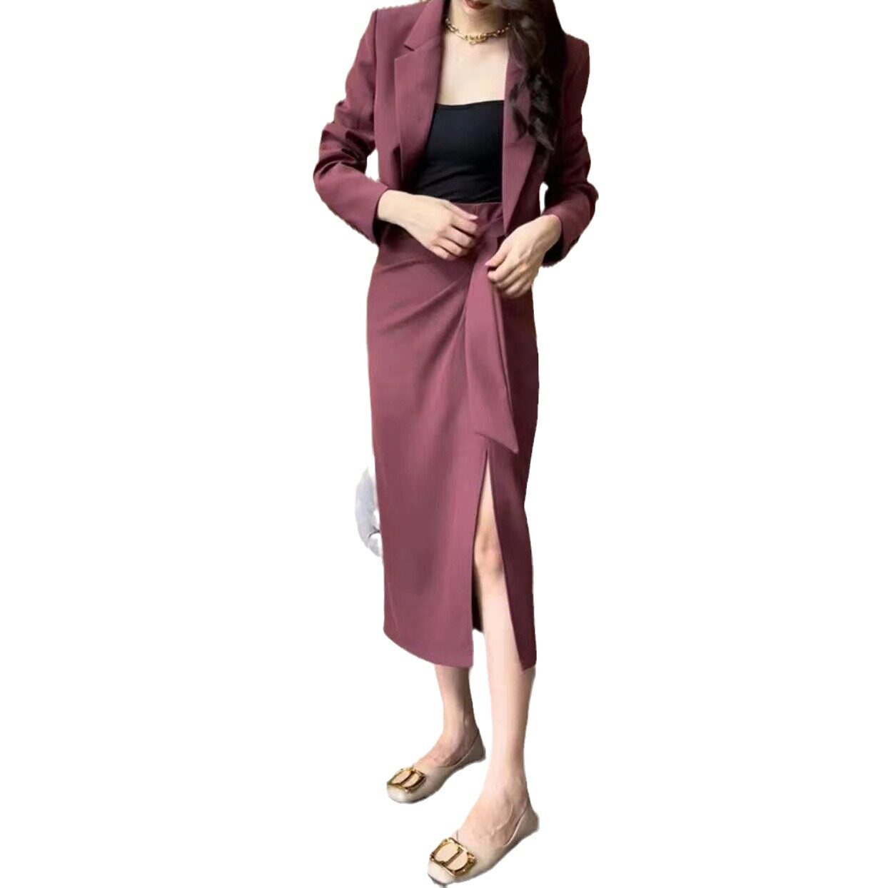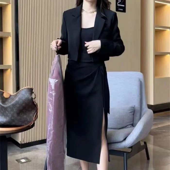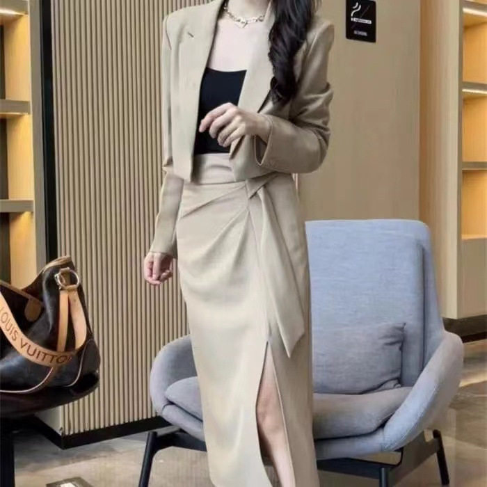 西装 2026春秋季 短款 套装 外套气质职场开叉半身裙两件套 时尚