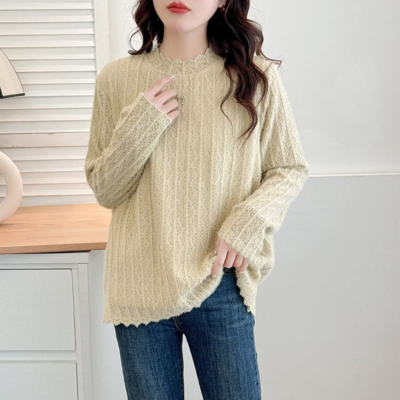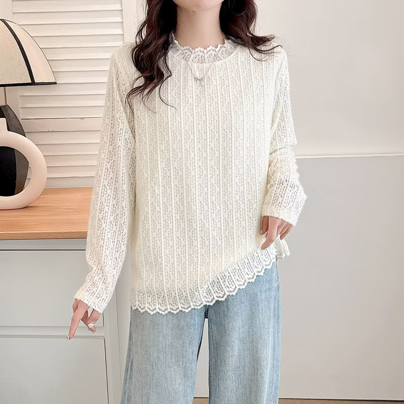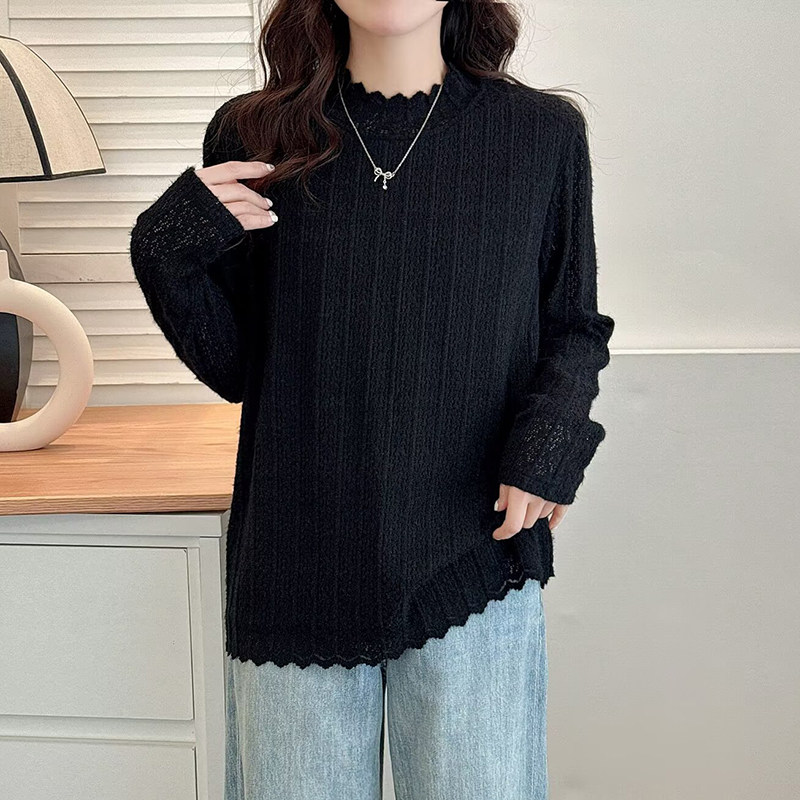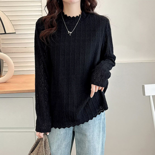 2025年新款 大码 女秋季 双层蕾丝打底衫 显瘦软糯内搭上衣 胖mm秋冬季