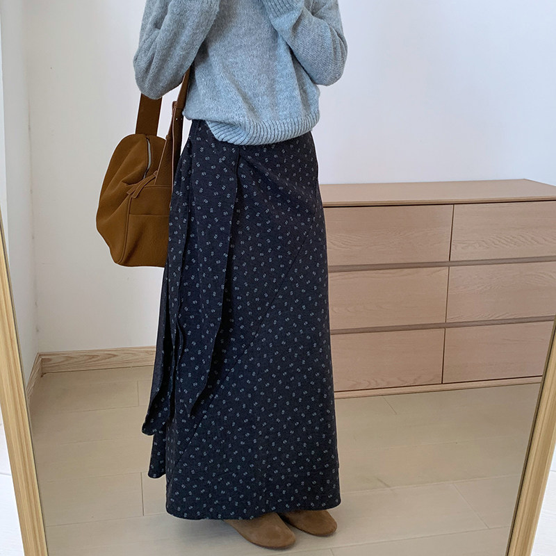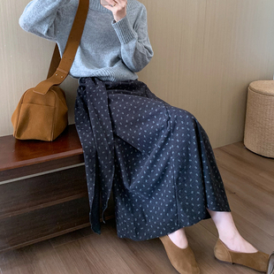 休闲百搭高腰长款 韩版 裙子 新款 话里精致气质系带小花半裙2025秋季