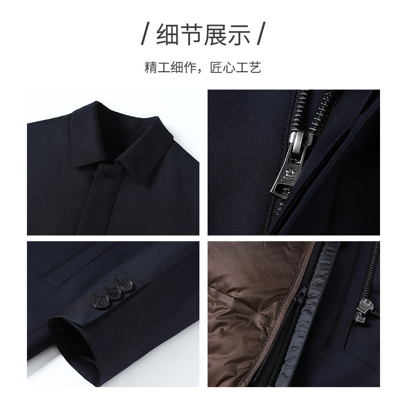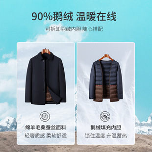 梦特娇冬装 90%白鹅绒 男羽绒服翻领高端夹克保暖J 绵羊毛桑蚕丝