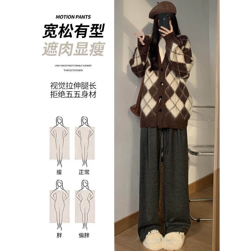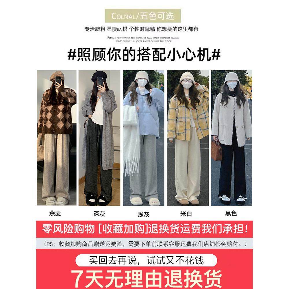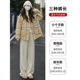 加绒高腰直筒垂感慵懒秋冬宽松阔腿裤 灰色糯米裤 女春秋2025年新款