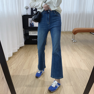 阔腿喇叭裤 加绒复古不贴腿微喇牛仔裤 高腰显瘦窄版 新款 女2025秋季