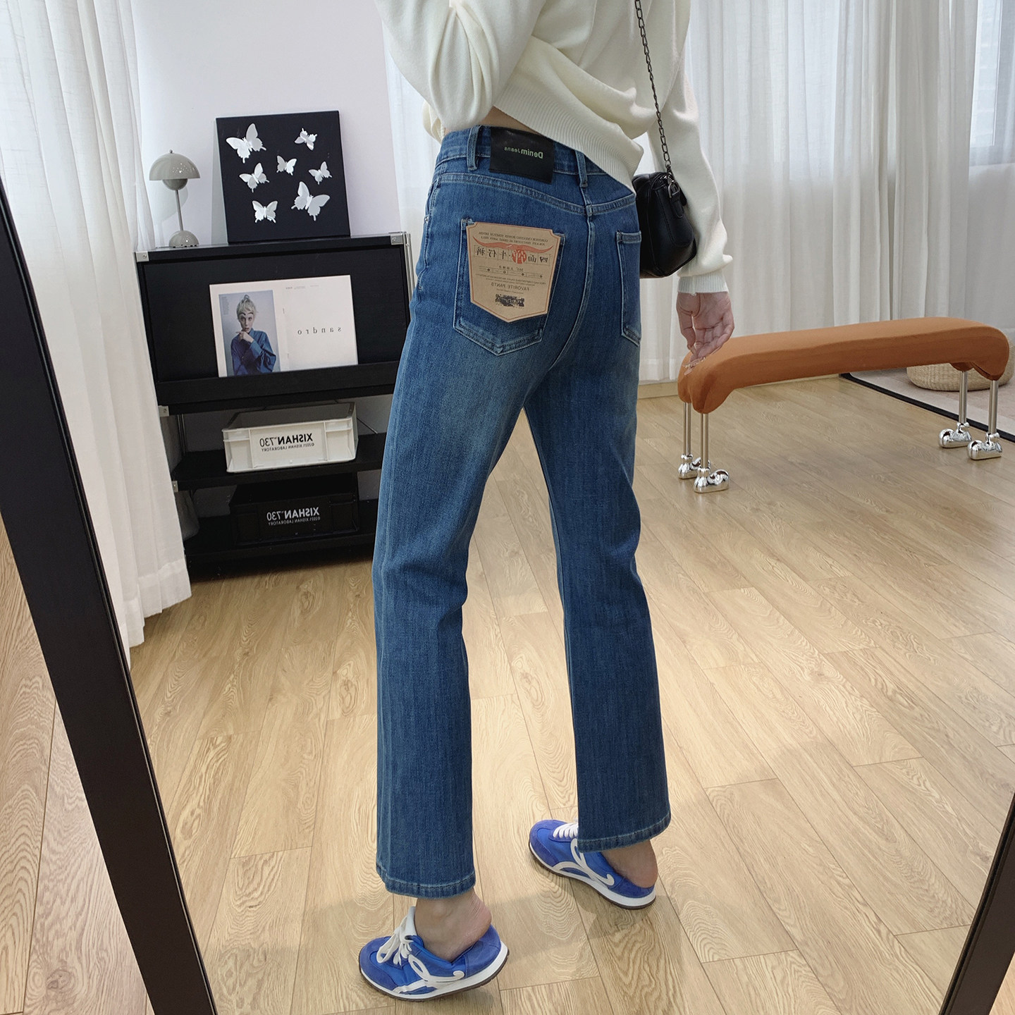 磨毛 显瘦裤 Navigare意大利小帆船蓝色阔腿牛仔裤 新款 子 女秋冬季