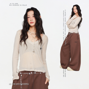 女 街头简约百搭长袖 CBXLAB街舞潮牌显瘦慵懒深V随性辣妹罩衫 美式