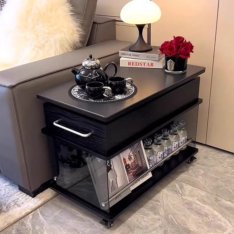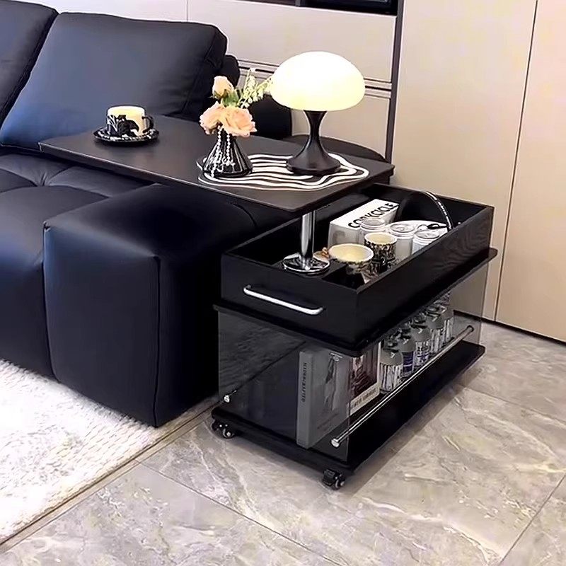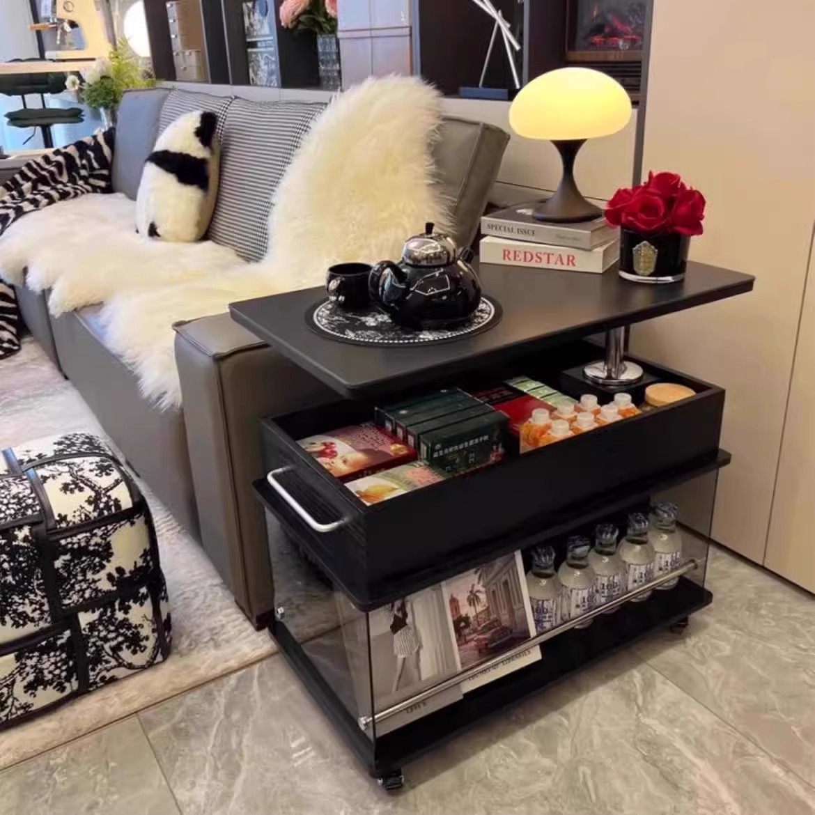 全实木可移动巴士边几阳台茶几桌小推车轻奢岩板升降创意沙发边柜