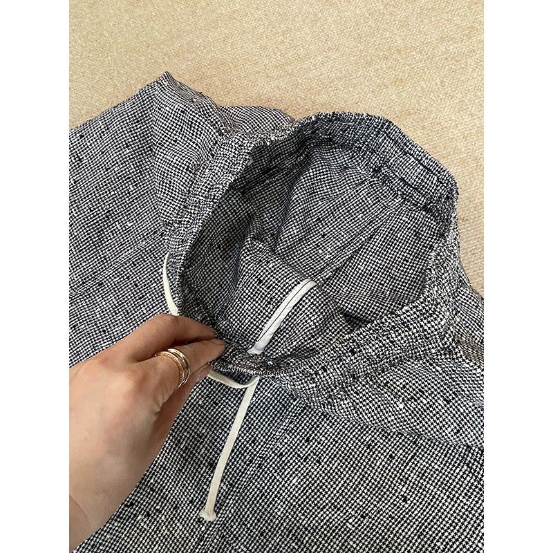 88266 宽松休闲百搭千鸟格松紧腰抽绳直筒汉麻八分裤 2025春款 新款