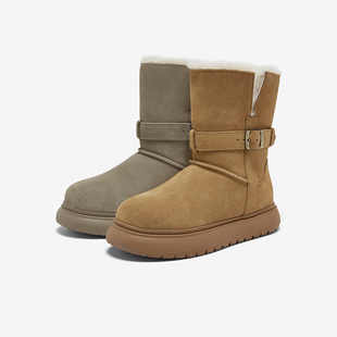 中靴女L2509DZ5 厚底雪地靴保暖极寒大棉鞋 百思图2025冬季 商场新款