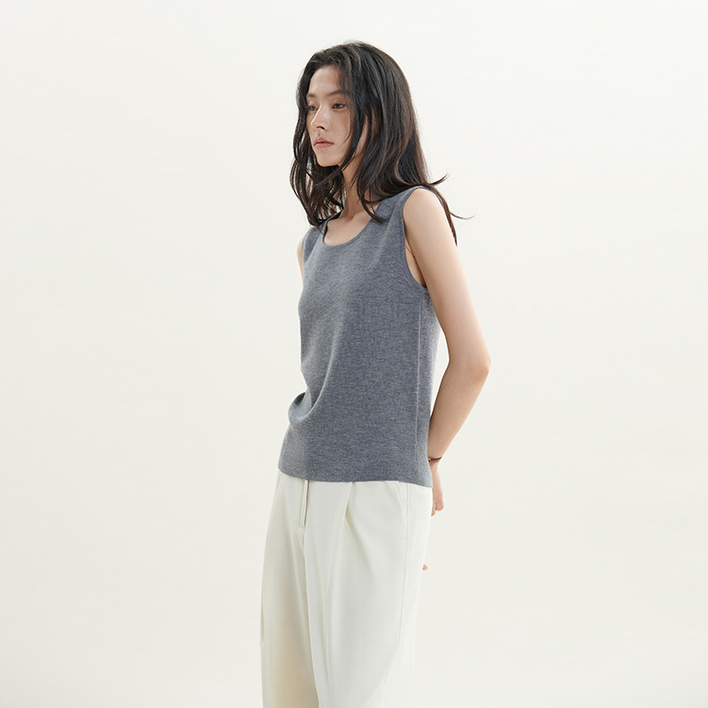圆领背心羊绒衫 针织100%纯山羊绒毛衣2025新款 」浅秋无袖 「新经典