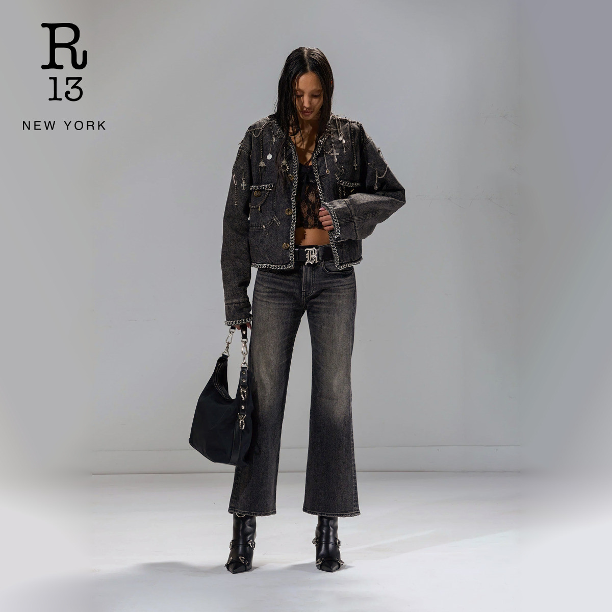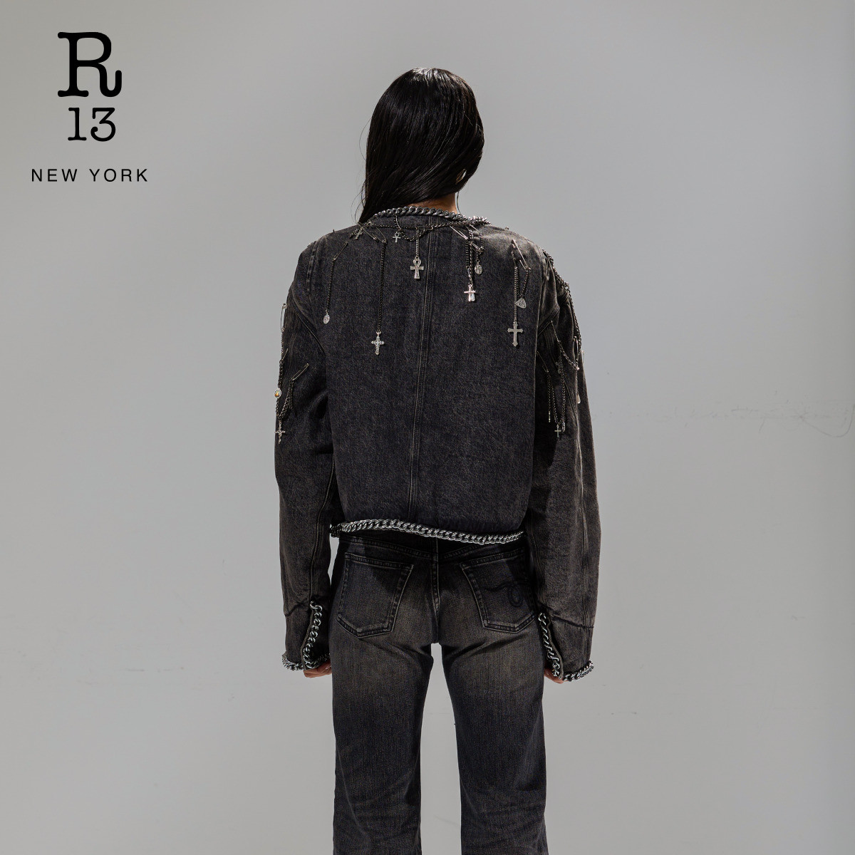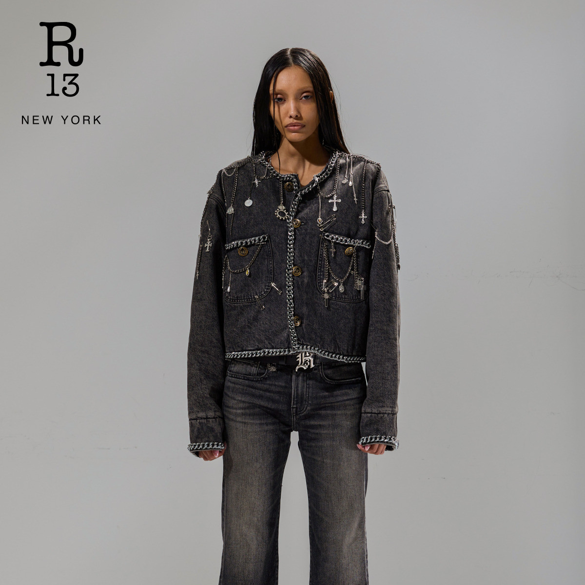 R13 明星同款 时尚 牛仔工装 末甄选 朋克摇滚风短款 外套 季