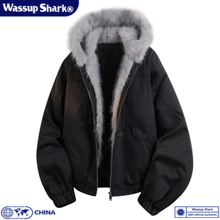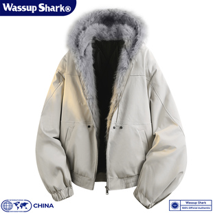 Wassup 棉服外套潮 Shark座山雕毛领连帽夹克男女秋冬加厚保暖工装