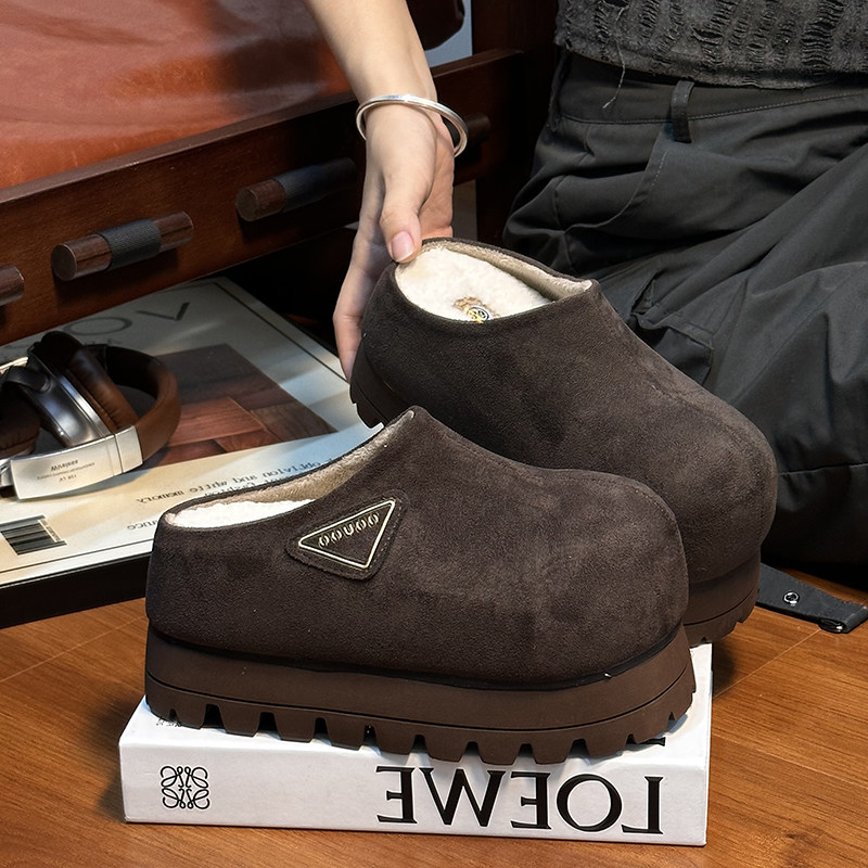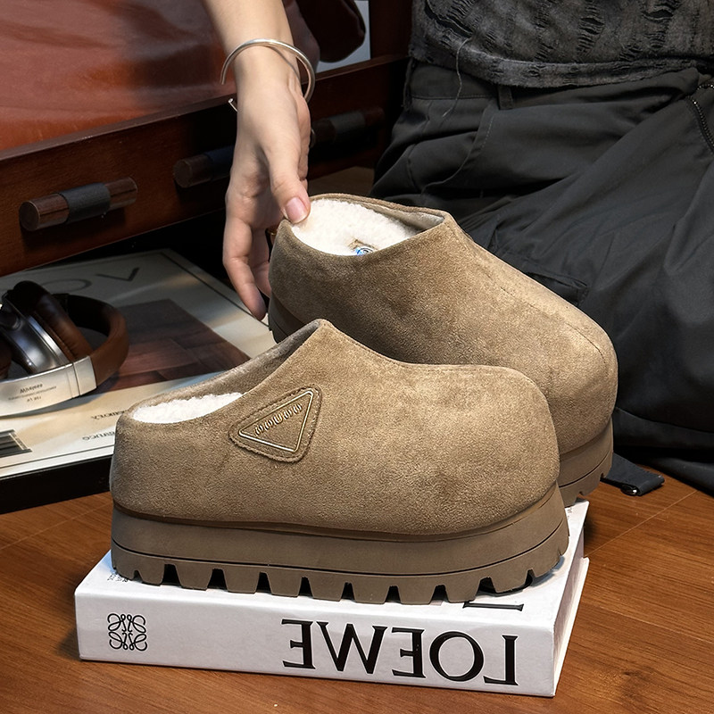 毛毛拖鞋 小个子增高勃肯鞋 女2025新款 丑萌大头松糕厚底包头半拖鞋
