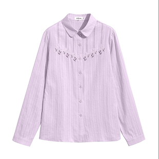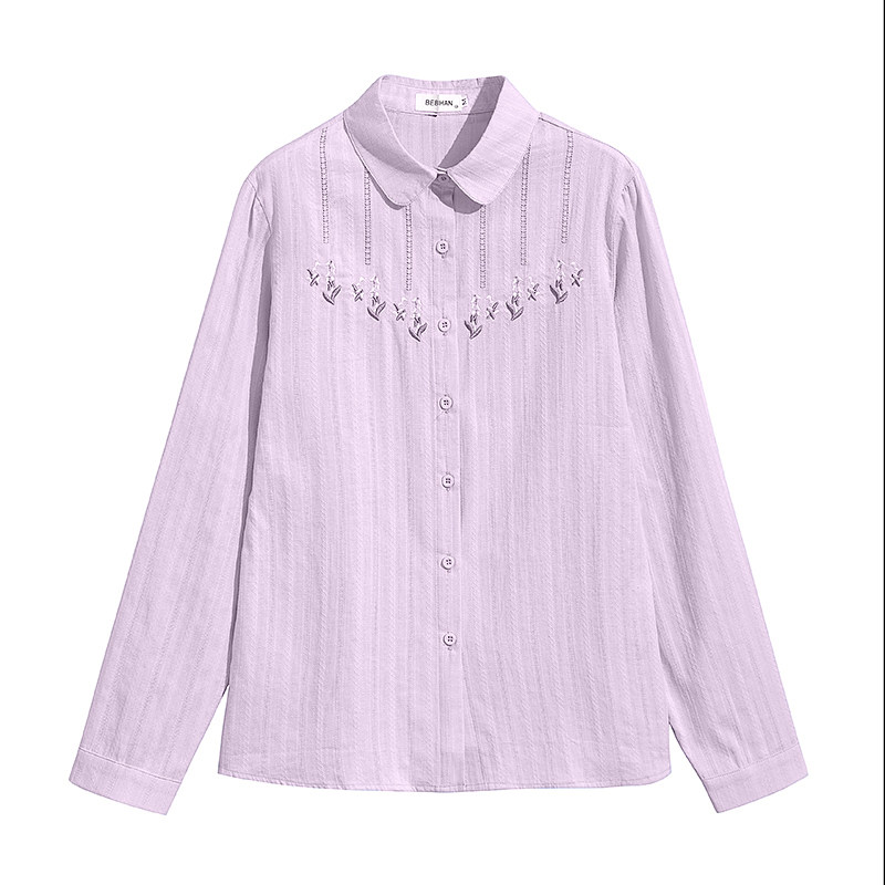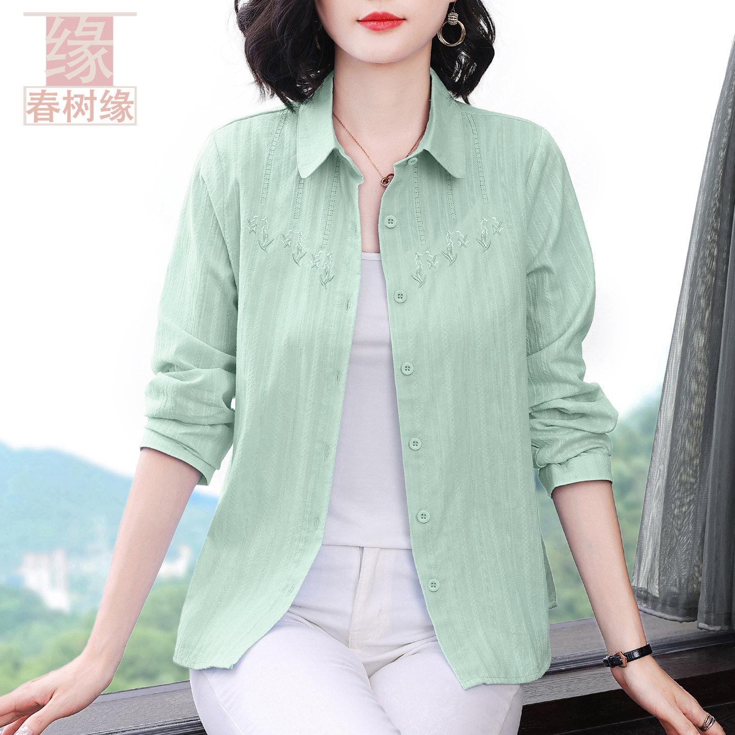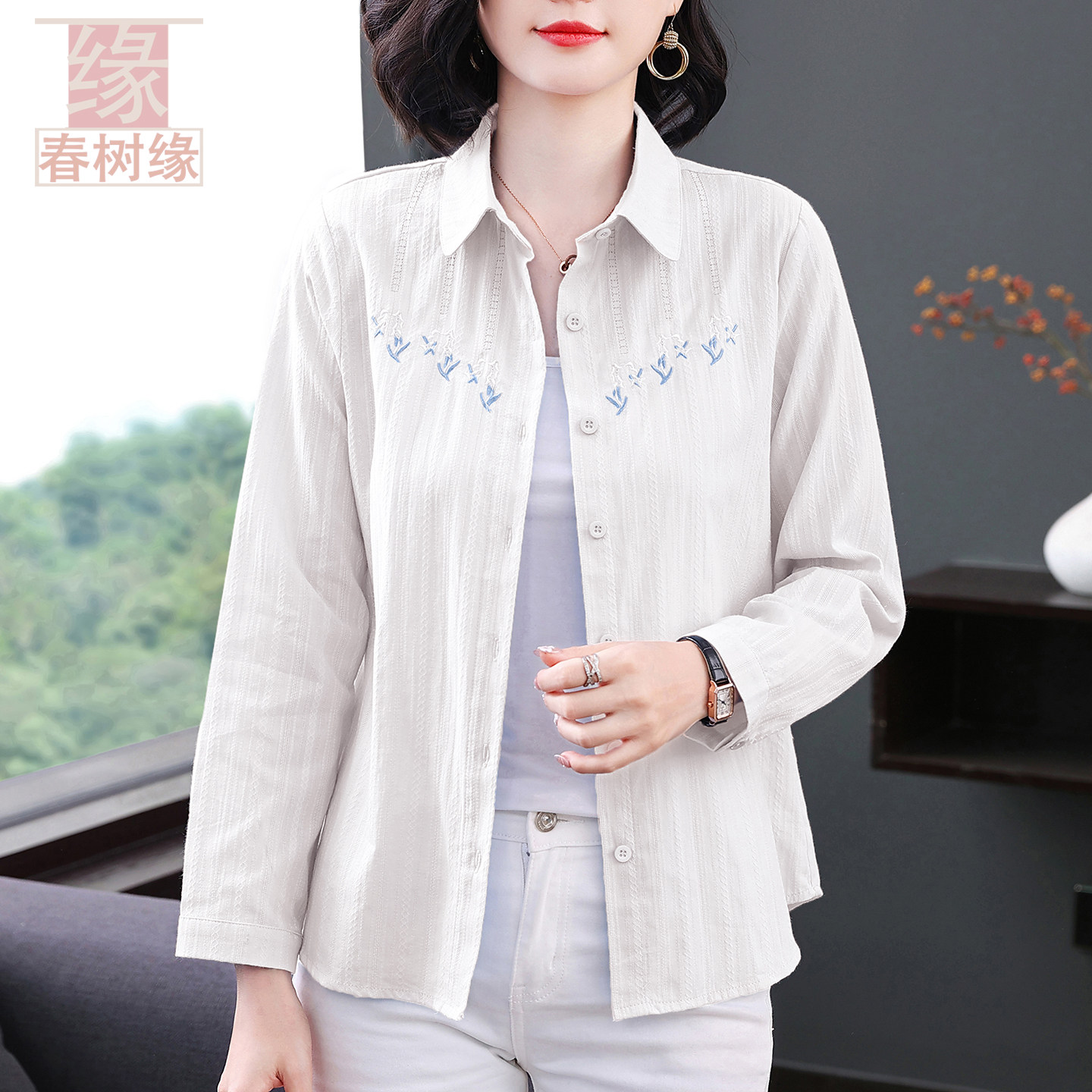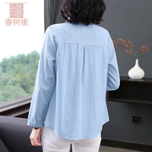 开衫 100%棉 女春夏长袖 全棉衬衫 上衣女妈妈刺绣防晒衣 春树缘正品