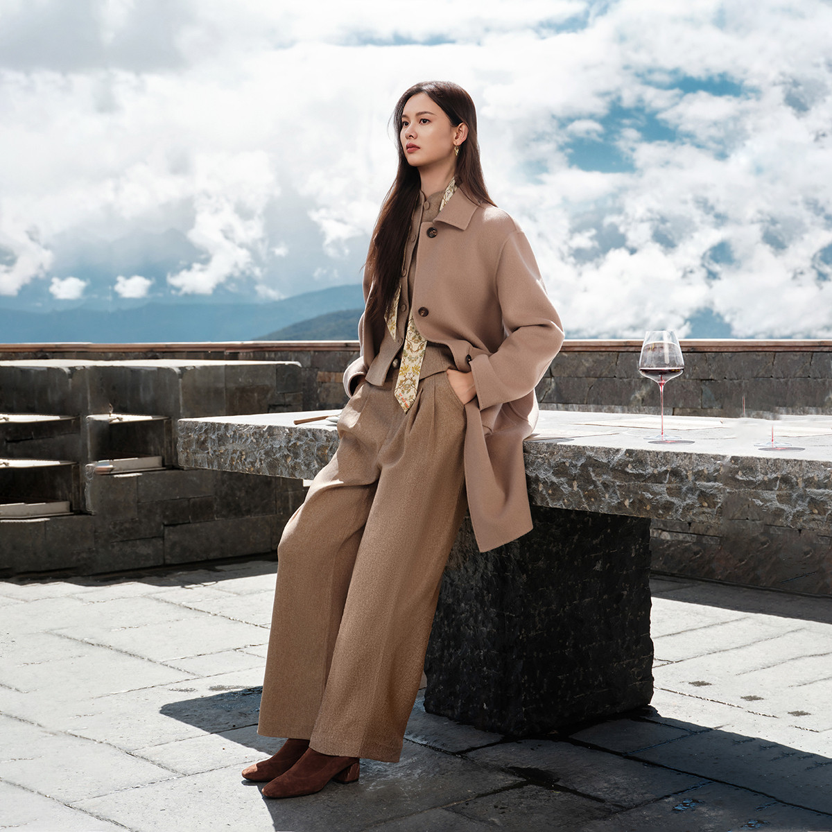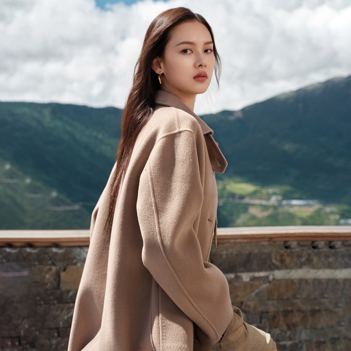 翻领大衣外套8316A 100阿拉善山羊绒中长款 EP雅莹25秋冬新款 女装