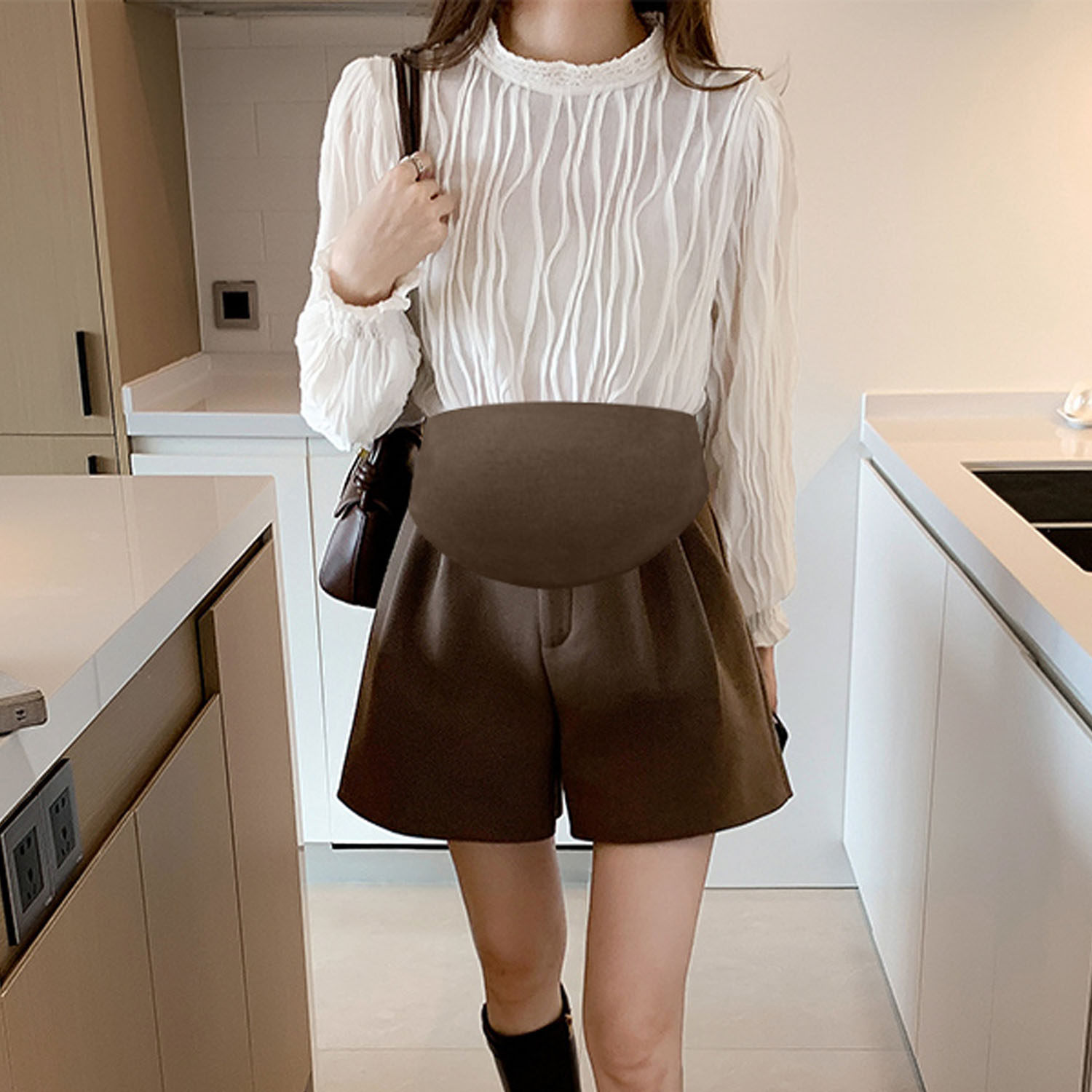 子靴裤 孕妇毛呢阔腿短裤 托腹显瘦A字打底裤 外穿2025新款 子秋冬季