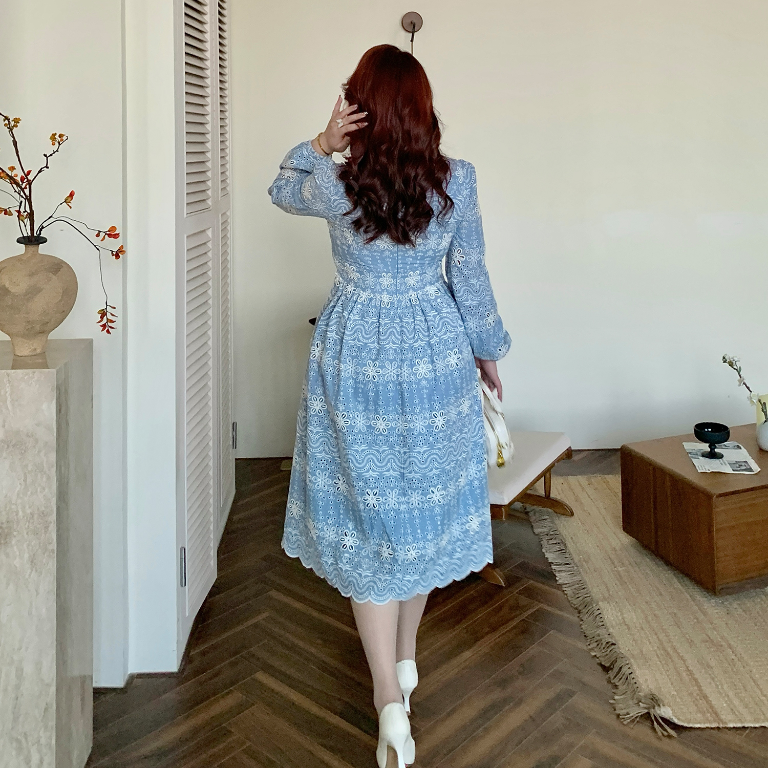 宫廷风复古镂空刺绣时尚 GLEC大码 法式 2025秋冬新款 减龄连衣裙 女装