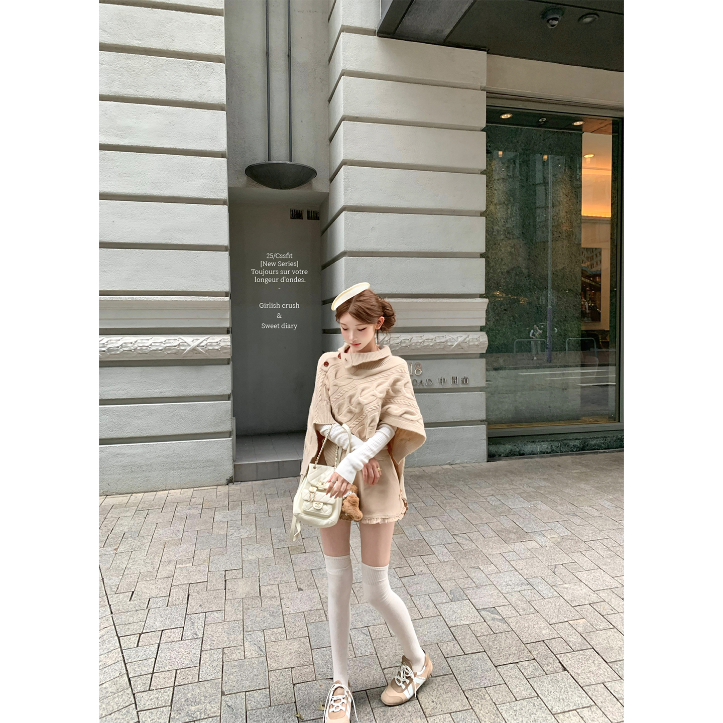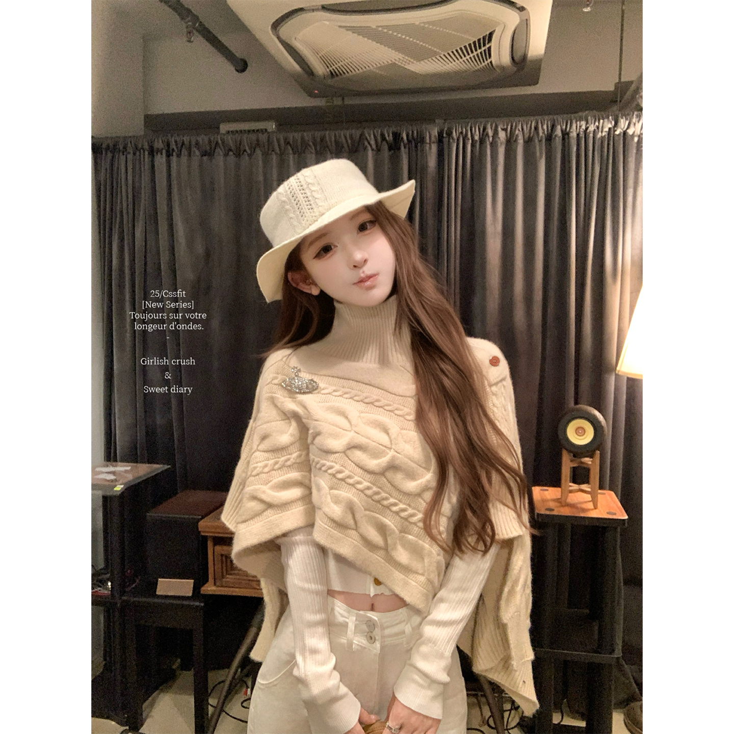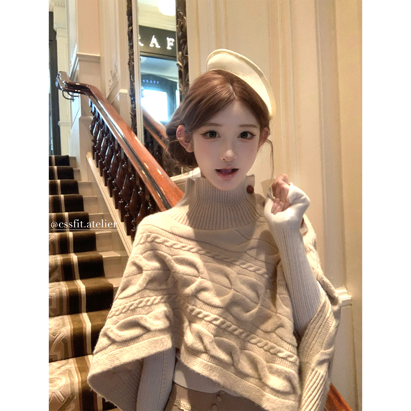 迟伞伞25 vivien 焦糖利口酒 土星高领麻花针织不规则斗篷