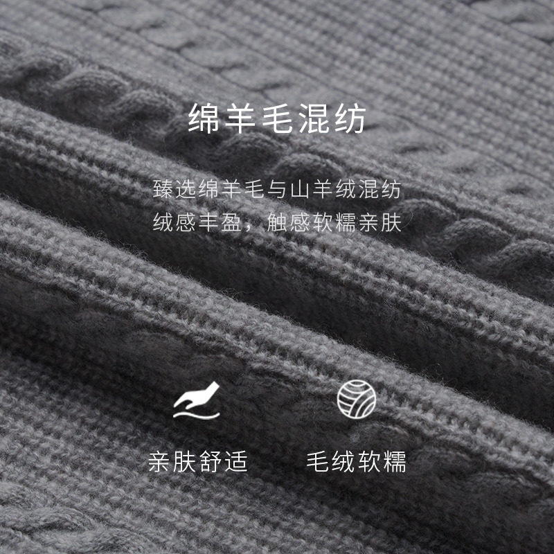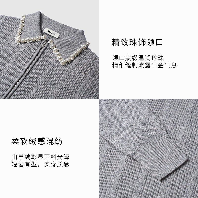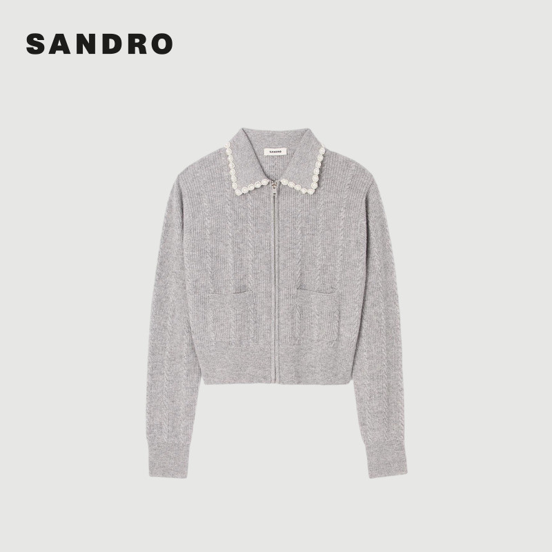 绵羊毛仿珠饰翻领绞花针织衫 季 时尚 法式 末7折SANDRO2025秋冬女装