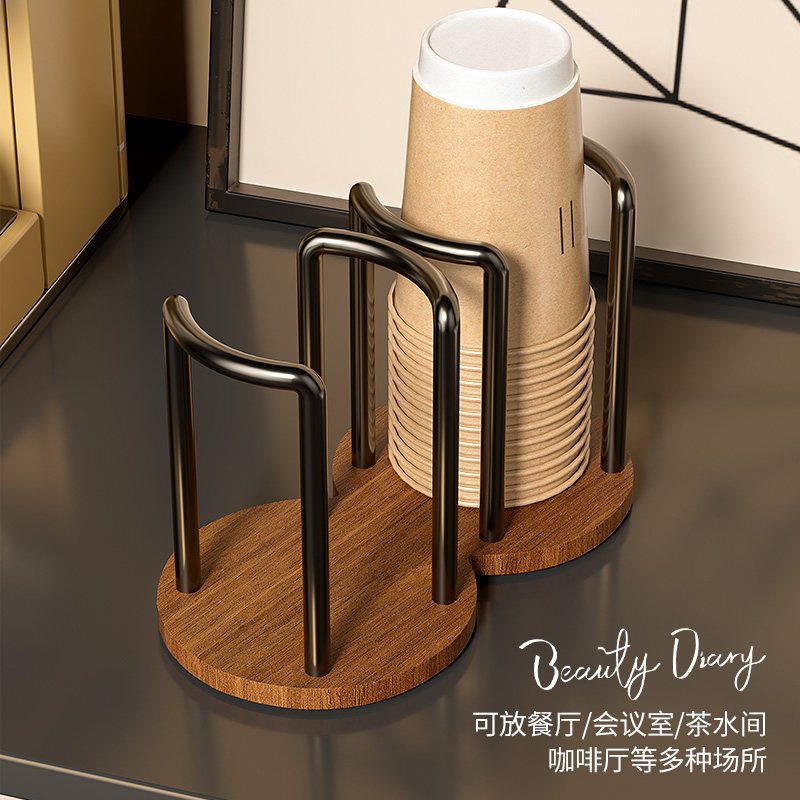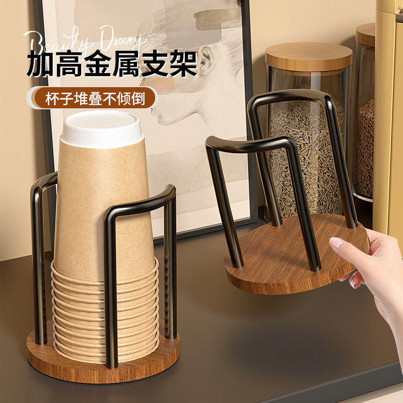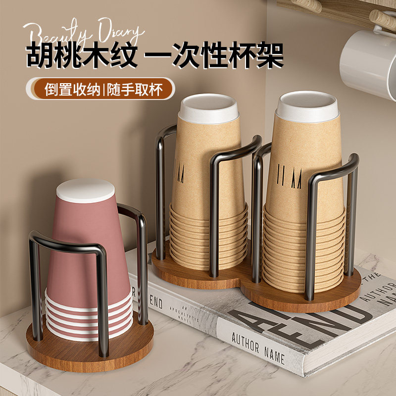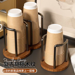 一次性杯子取杯器胡桃木高级感放水杯收纳置物咖啡茶杯桌面纸杯架