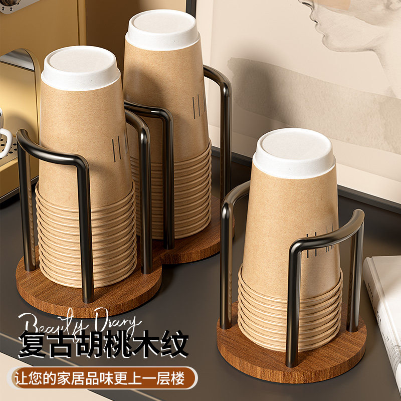 中古风一次性杯子取杯器桌面杯子收纳置物架胡桃木家用防尘纸杯架