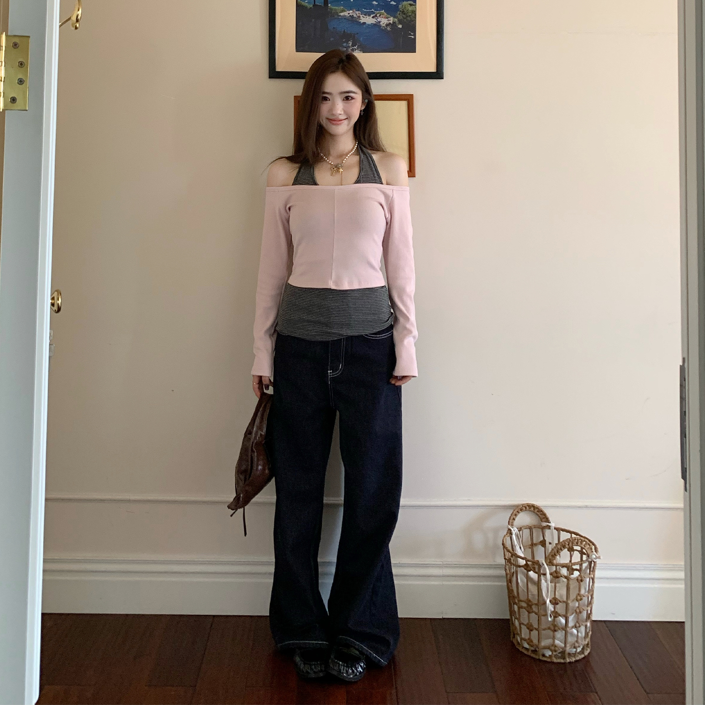 中年妈妈假两件上衣直筒裤 女2025年春秋新款 撞色休闲运动套装 时尚