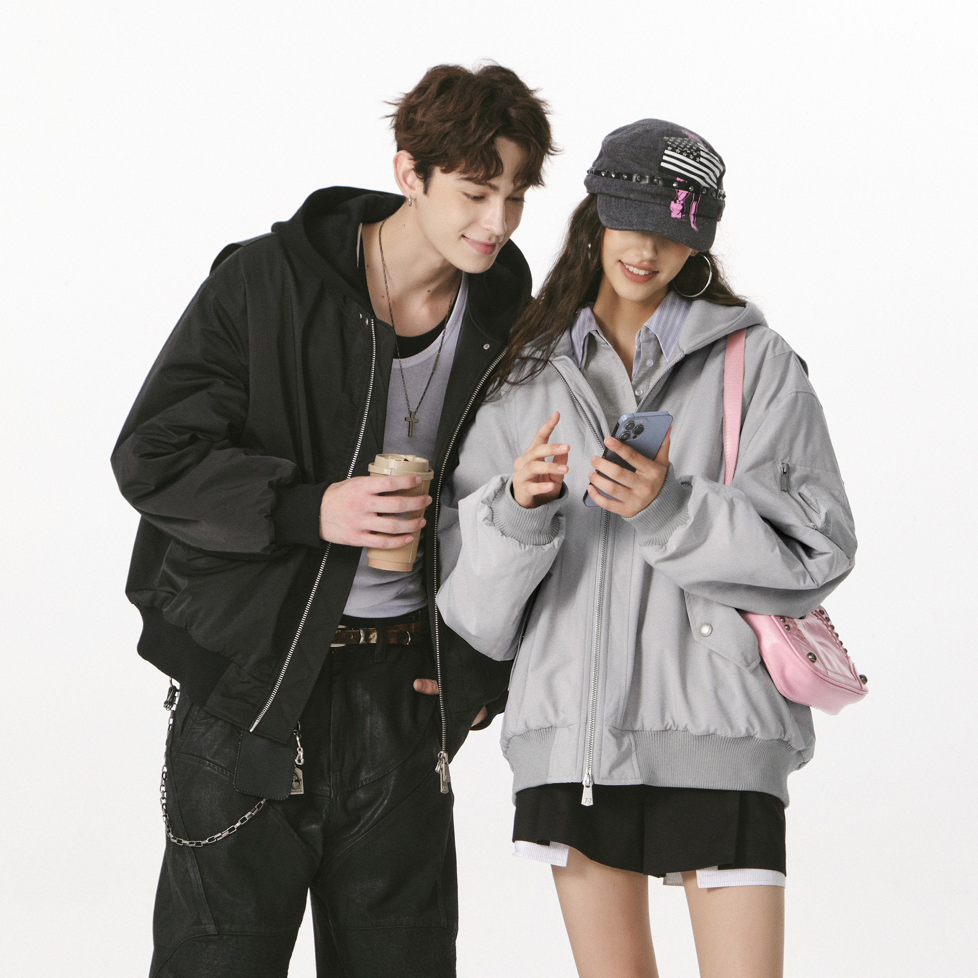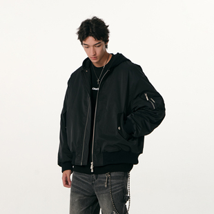 亿万少年BUFU美式 外套男 vibe复古翻领飞行夹克保暖棉服bomber短款