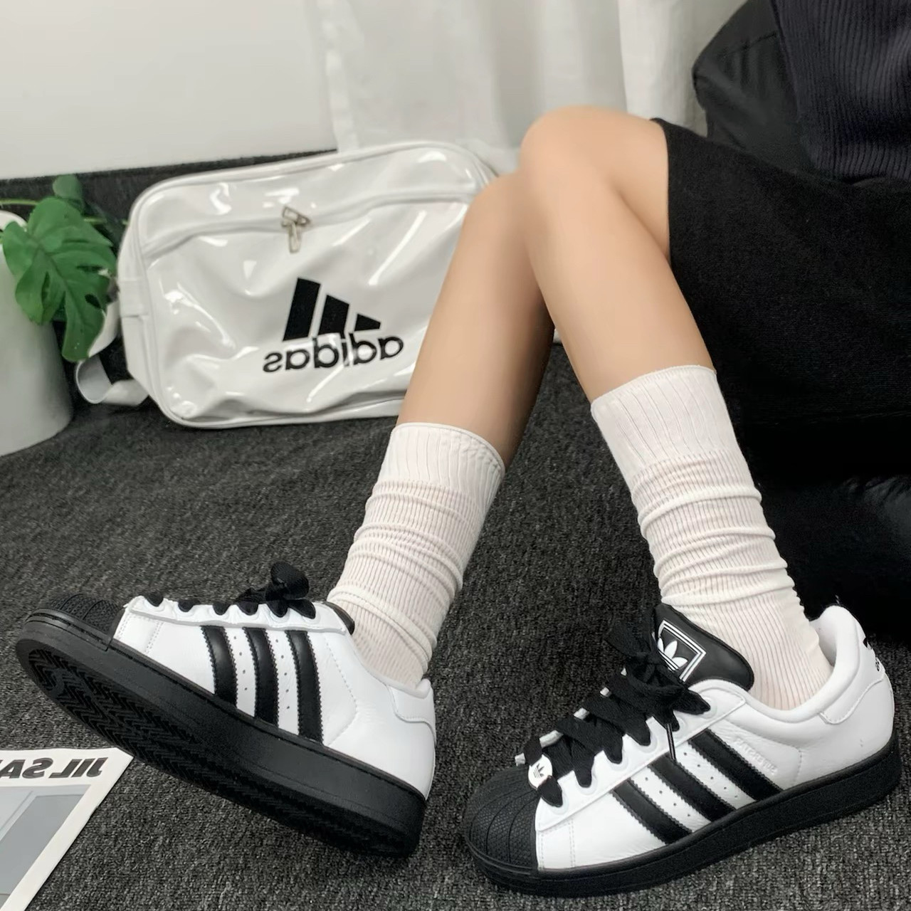 黑色 XLG 男女同款 时尚 JI0124 Adidas 低帮休闲板鞋 Superstar