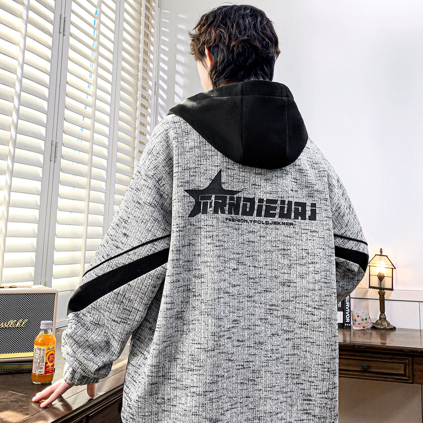 士 青少年初高中学生连帽宽松潮流休闲外套男装 夹克男生春秋季 新款