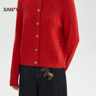 彩点纱圆领宽松披肩毛衣上衣女装 春季 516026 2026新款 三福红色开衫