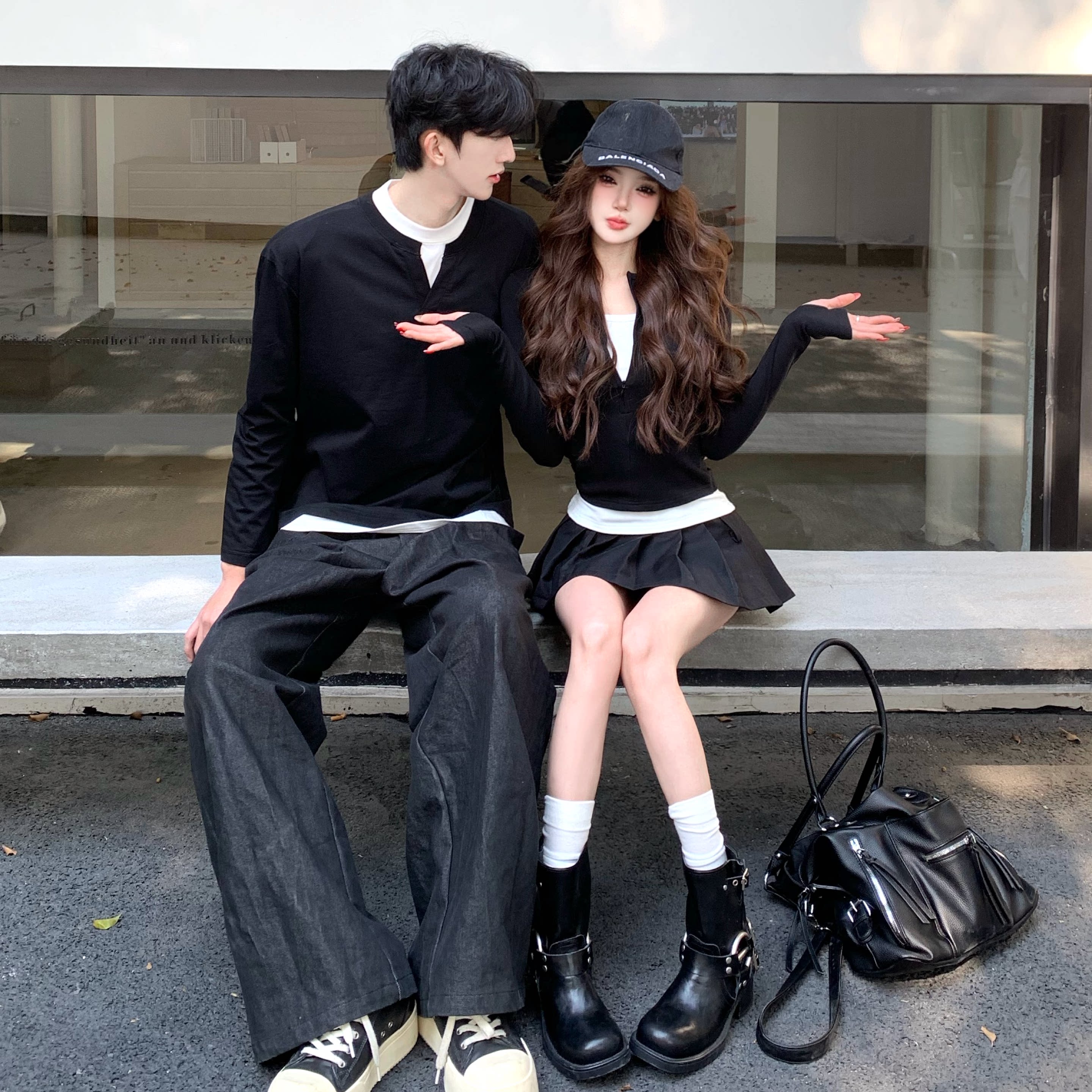 设计感假两件长袖 韩版 ins网红百搭显瘦上衣男 春秋2026新款 情侣装
