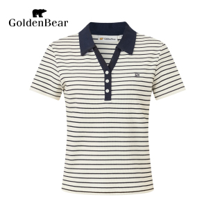 金熊2026年女士条纹撞色收腰短袖 BEAR GOLDEN POLO衫 春夏新品
