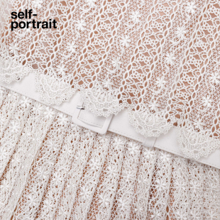 象牙白假两件钻饰蕾丝连衣裙短裙 2026春夏新款 self portrait