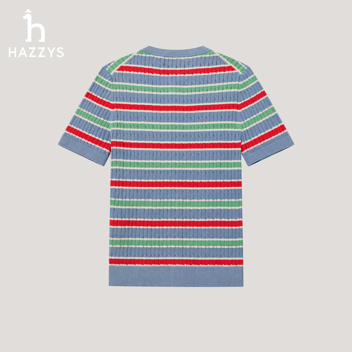 短袖 女时尚 Hazzys哈吉斯2026春夏新品 撞色条纹针织衫 商场同款