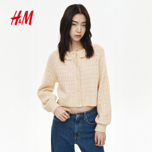毛针织衫 长袖 2026春季 复古透气网眼针织开衫 1332431 新款 HM女装