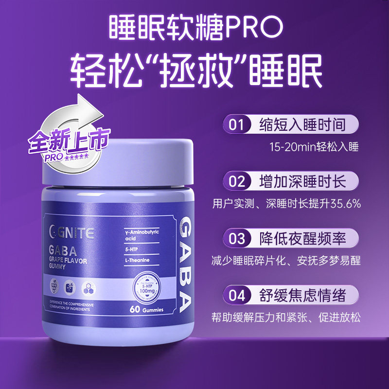 Gnite褪黑素睡眠软糖美国进口退黑素sleep升级版 GABA氨基丁酸pro