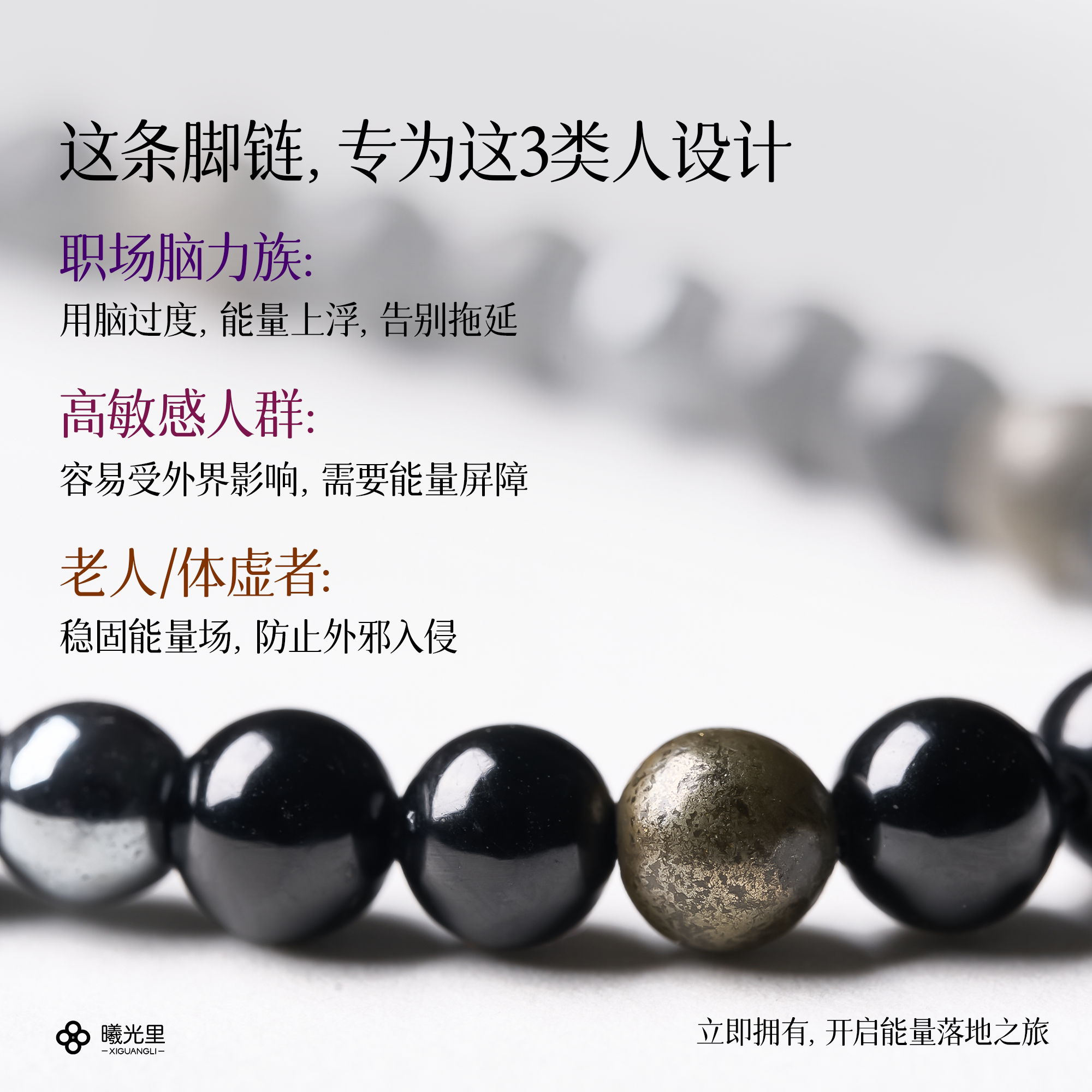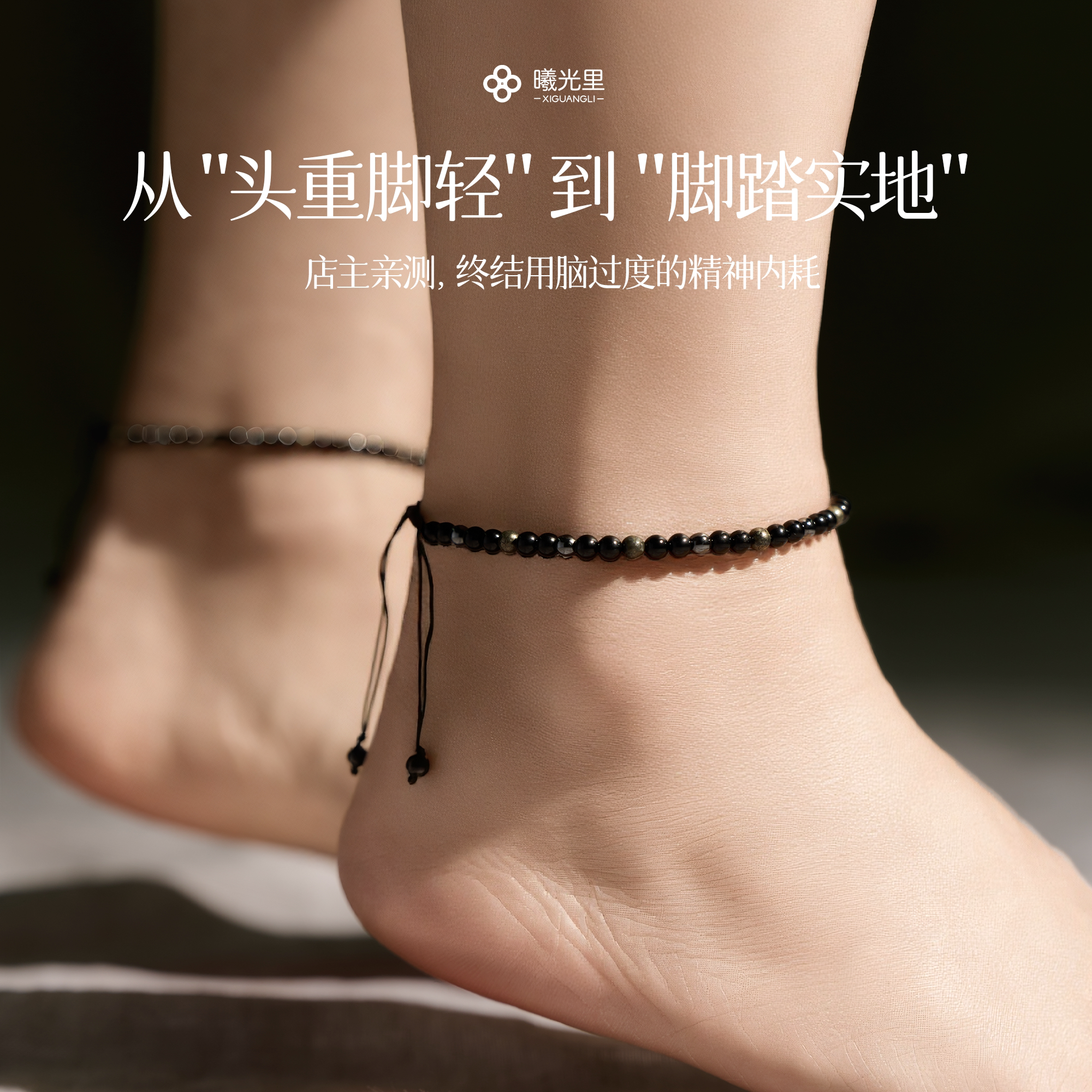2只装 振频 终结内耗 专注 天然黑碧玺 曦光里 好运脚链 大地