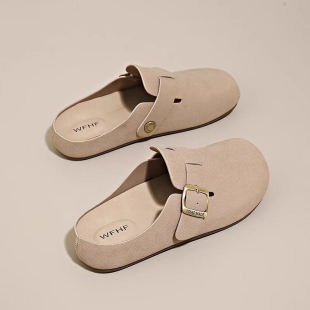 平底博肯鞋 春夏外穿一脚蹬懒人包头半拖鞋 女2026新款 三福勃肯拖鞋