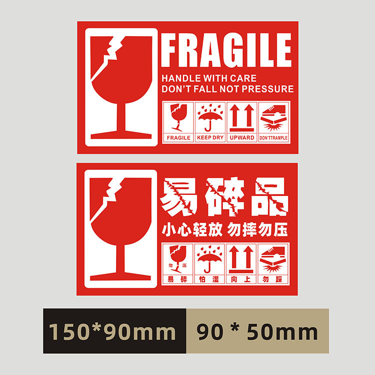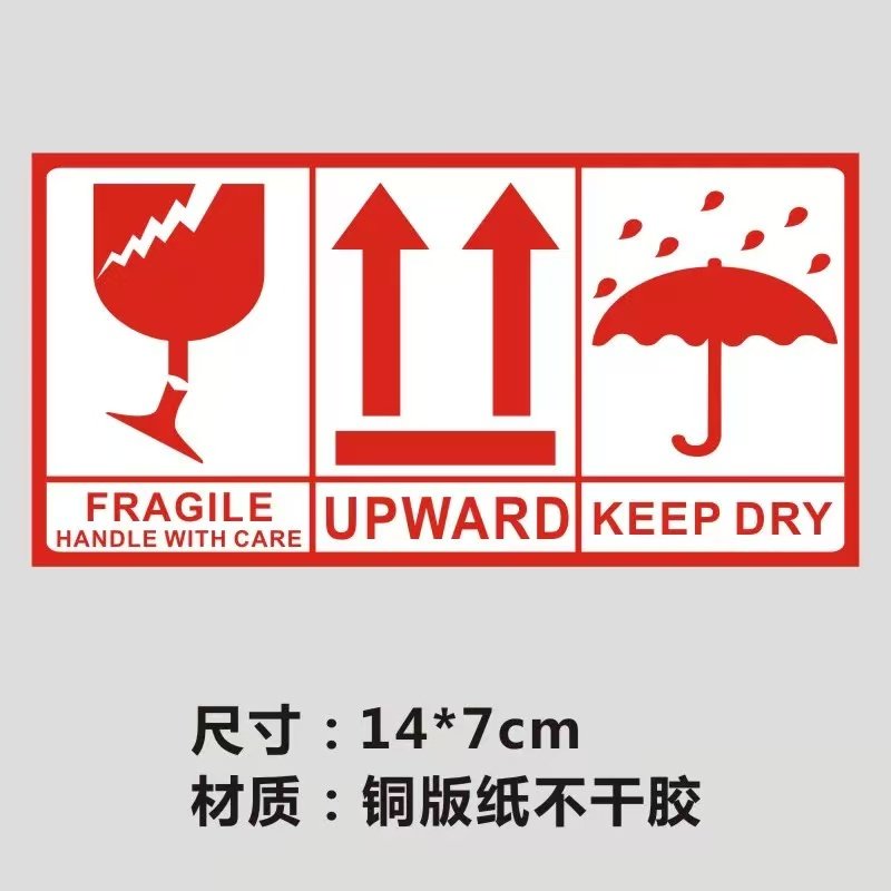 中英文易碎品标签fragile小心轻放勿踩此面箭头向上严禁倒置贴纸
