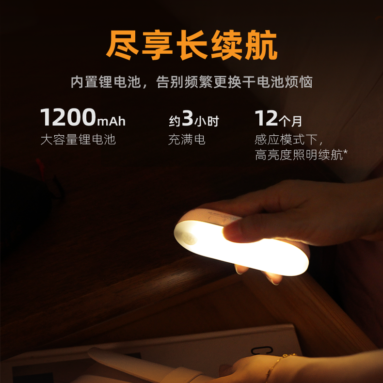 智能人体感应灯小夜灯充电床头起夜人来即亮台灯夜间宿舍厨房磁吸