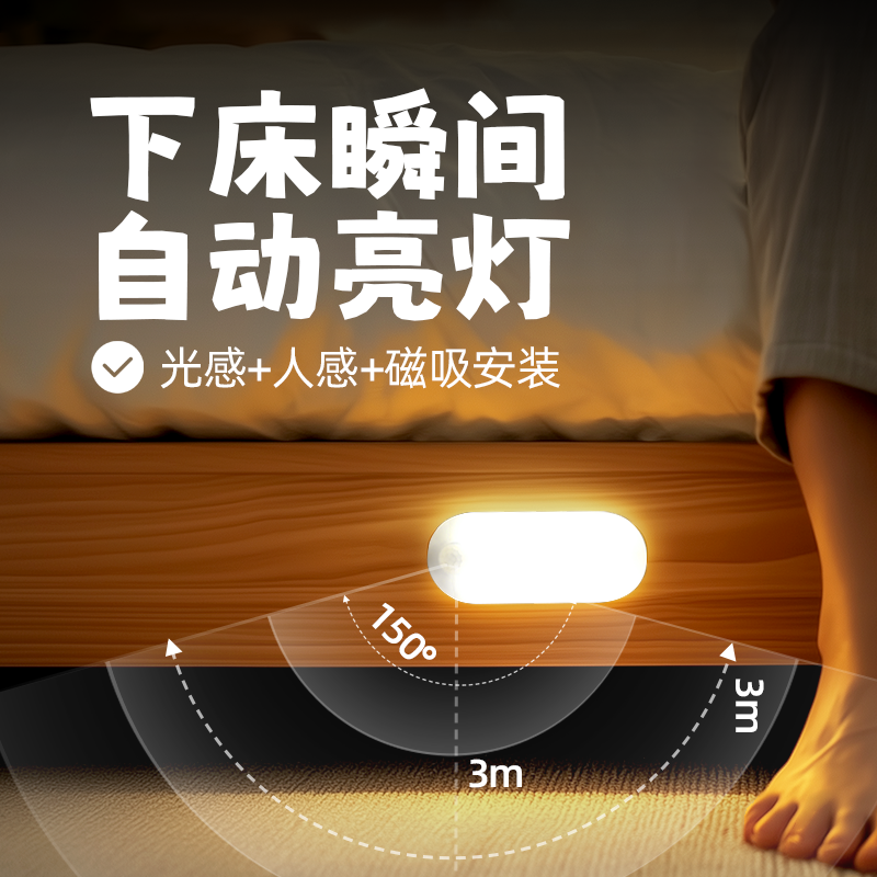 人体自动感应灯小夜灯卧室床头充电人来即亮厕所楼梯夜灯睡眠夜间