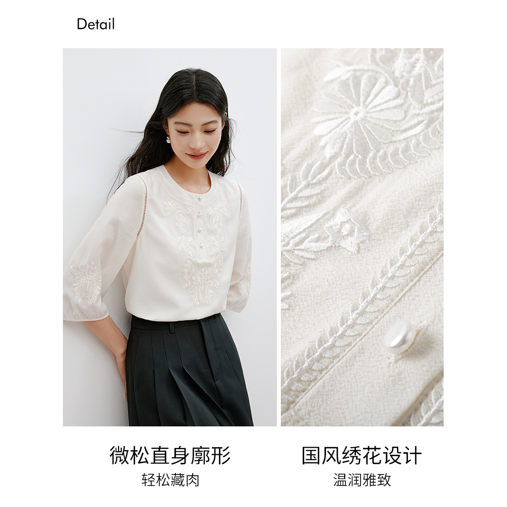 新款 女春季 设计感气质内搭叠穿上衣 木耳边白色衬衫 MULVAN法式