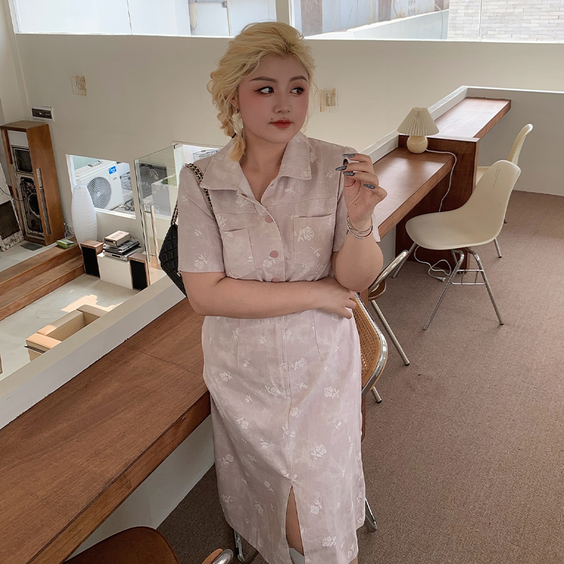 LTGIRL夏日大码 宽松显瘦连衣裙 必败水洗设计感两色玫瑰印花长短款