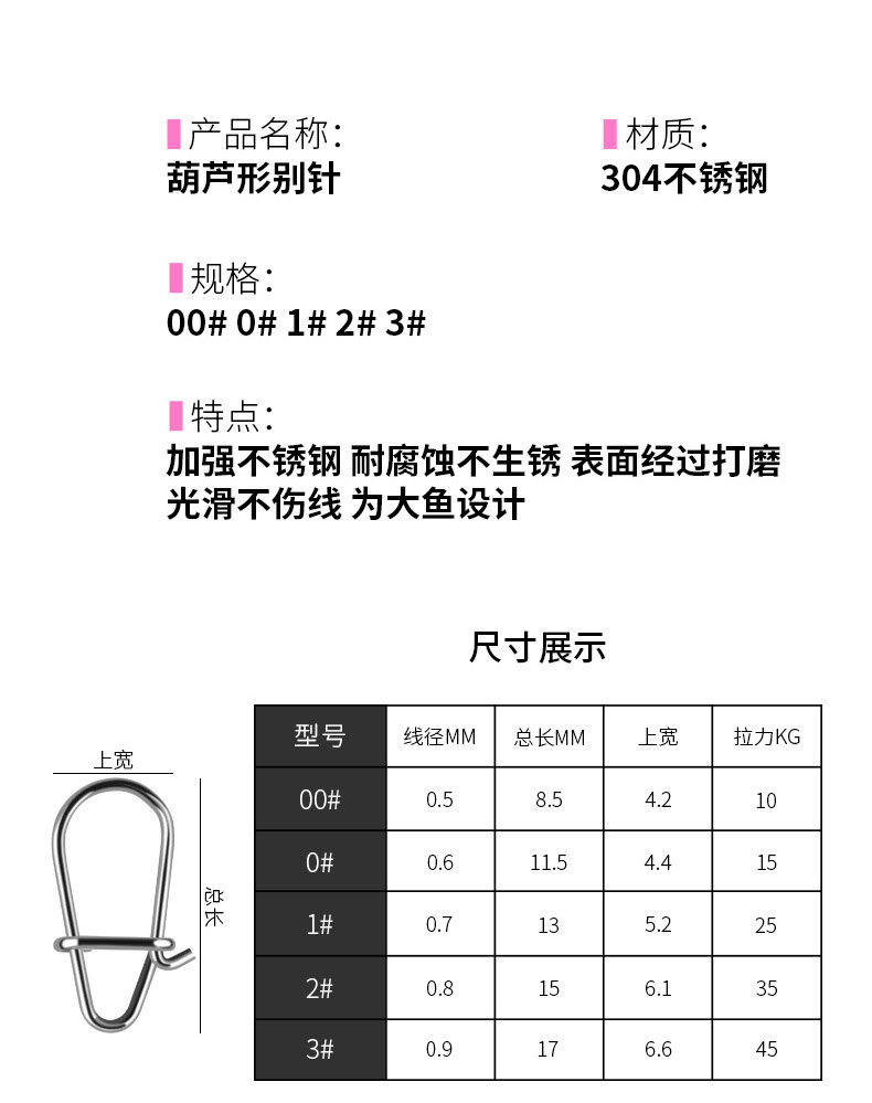 路亚葫芦别针加强连接器微物假饵增强型快速别扣葫芦形加粗导线扣