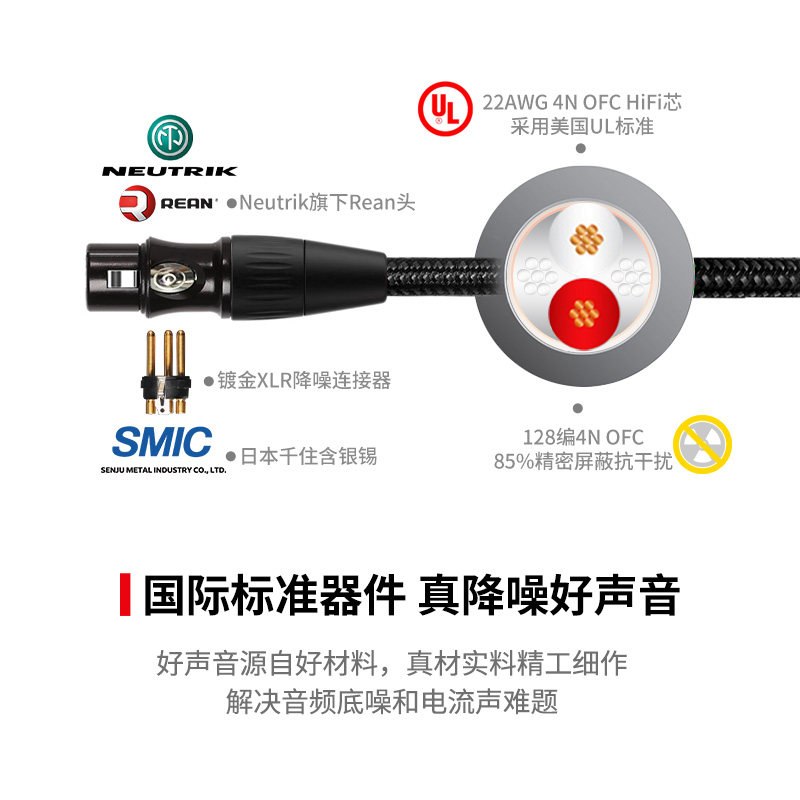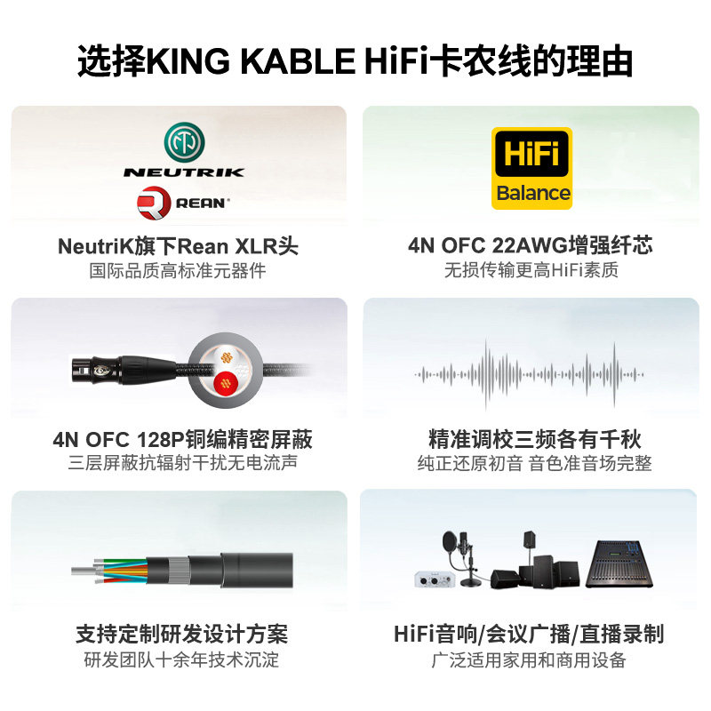 KingKable发烧卡农线xlr公对母音频线调音台麦克风直播话筒线K歌声卡功放音箱连接线diy定制延长线5米10米20m